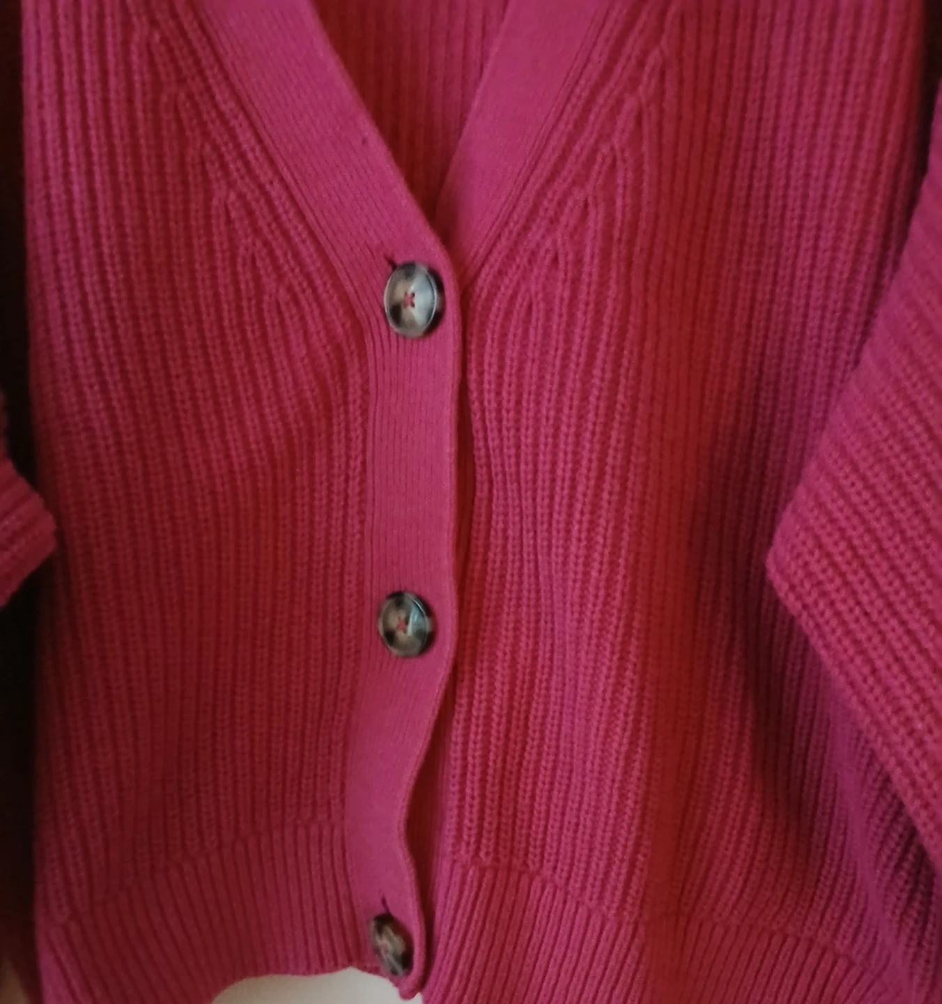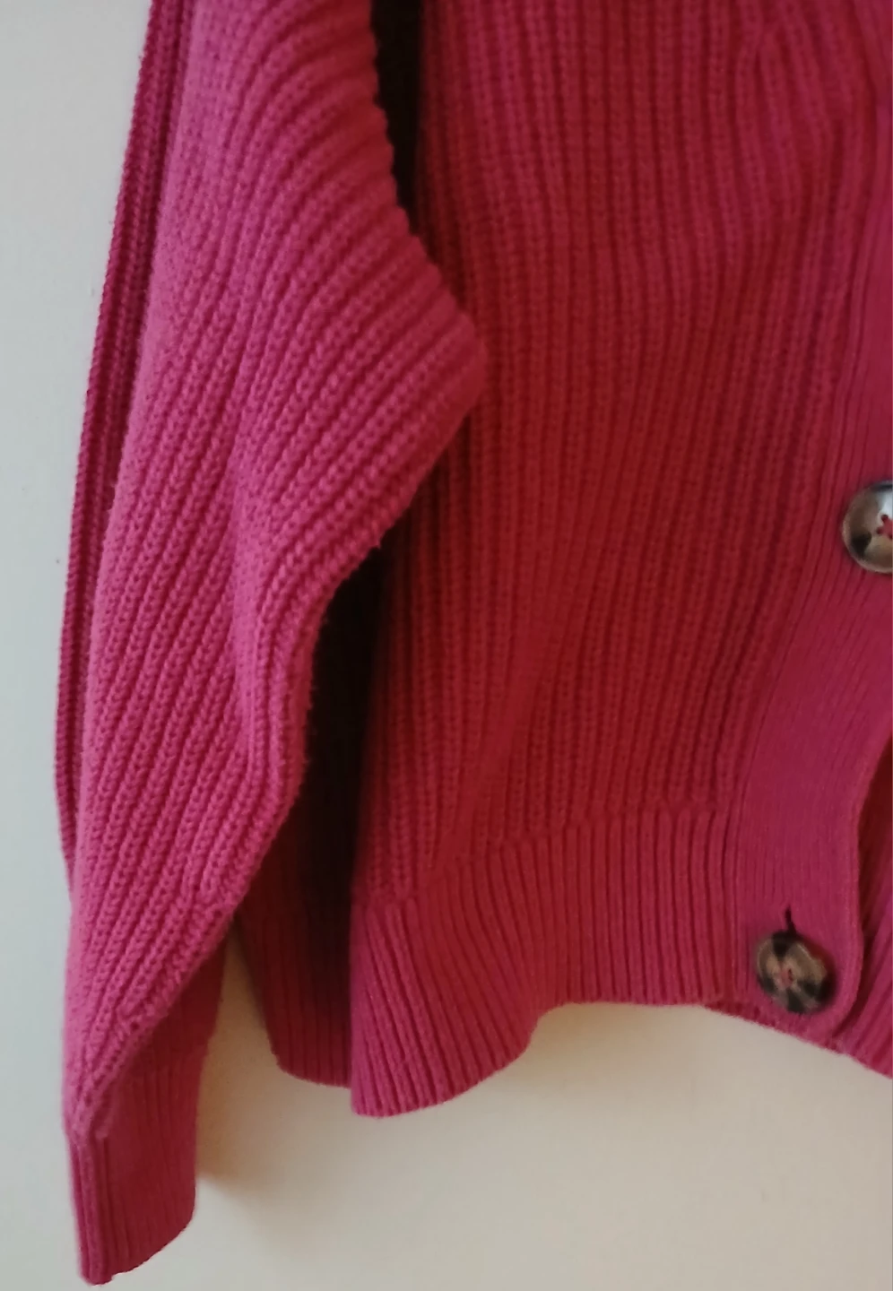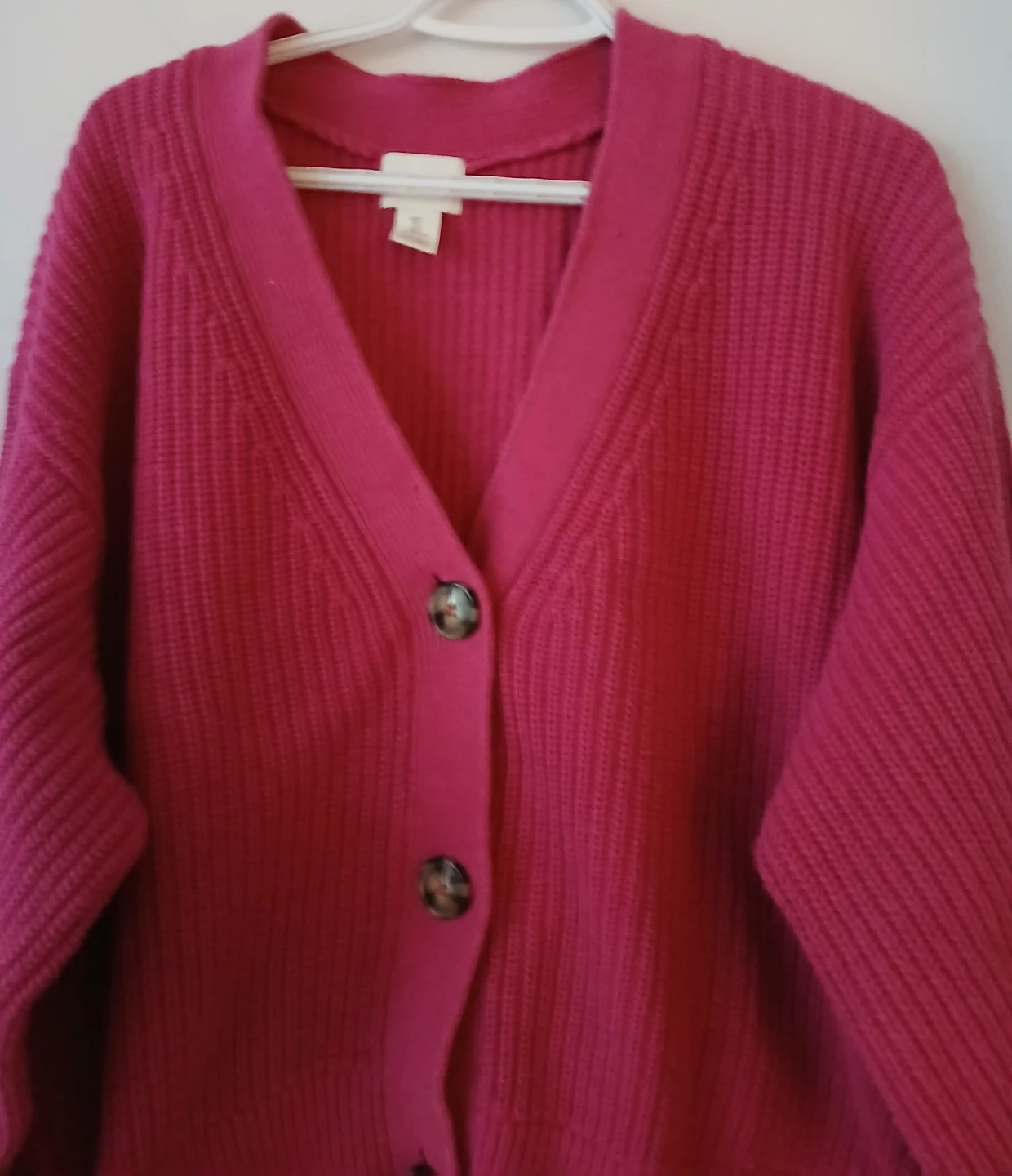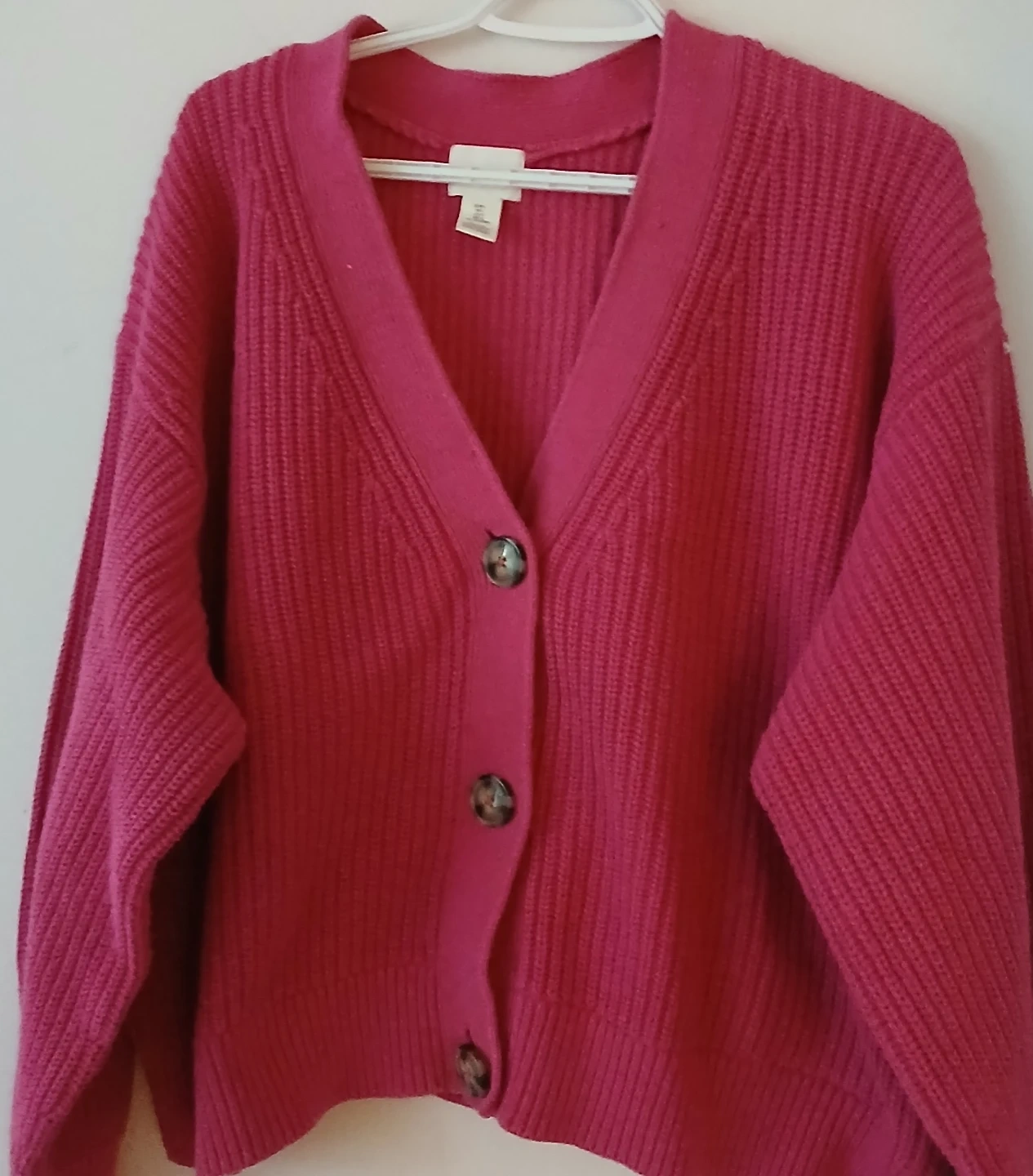 Selling a cute H&M cardigan in a vibrant pink colour! It's a size L and features a classic button-down design. Perfect for layering or wearing on its own!
