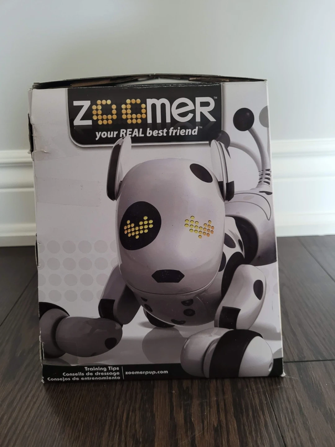 Selling a Zoomer robotic dog! It's in great condition and ready for a new home. This interactive toy is perfect for kids 5+ years old. It can learn tricks and respond to commands. Comes with the original box and USB charging cable!