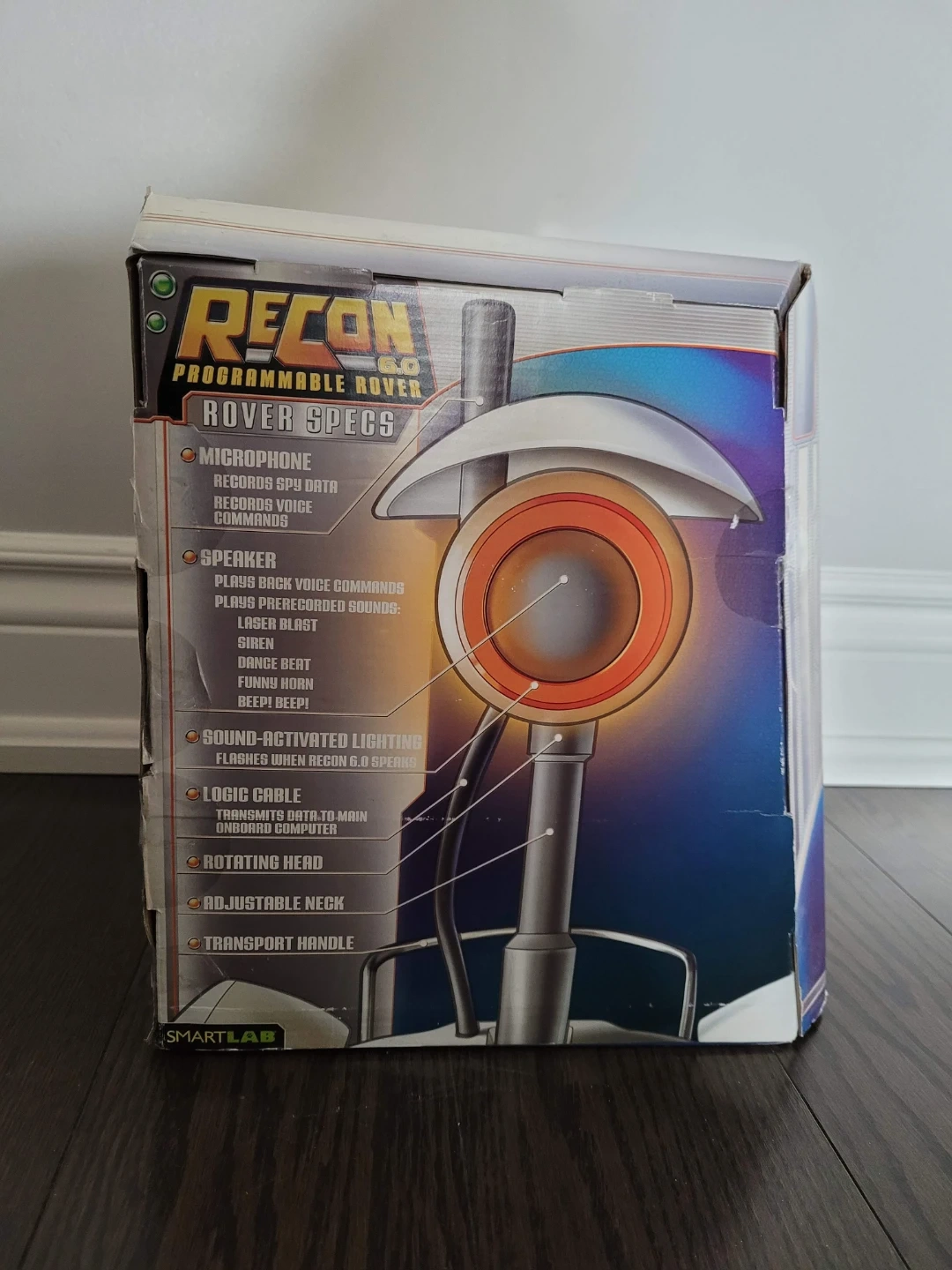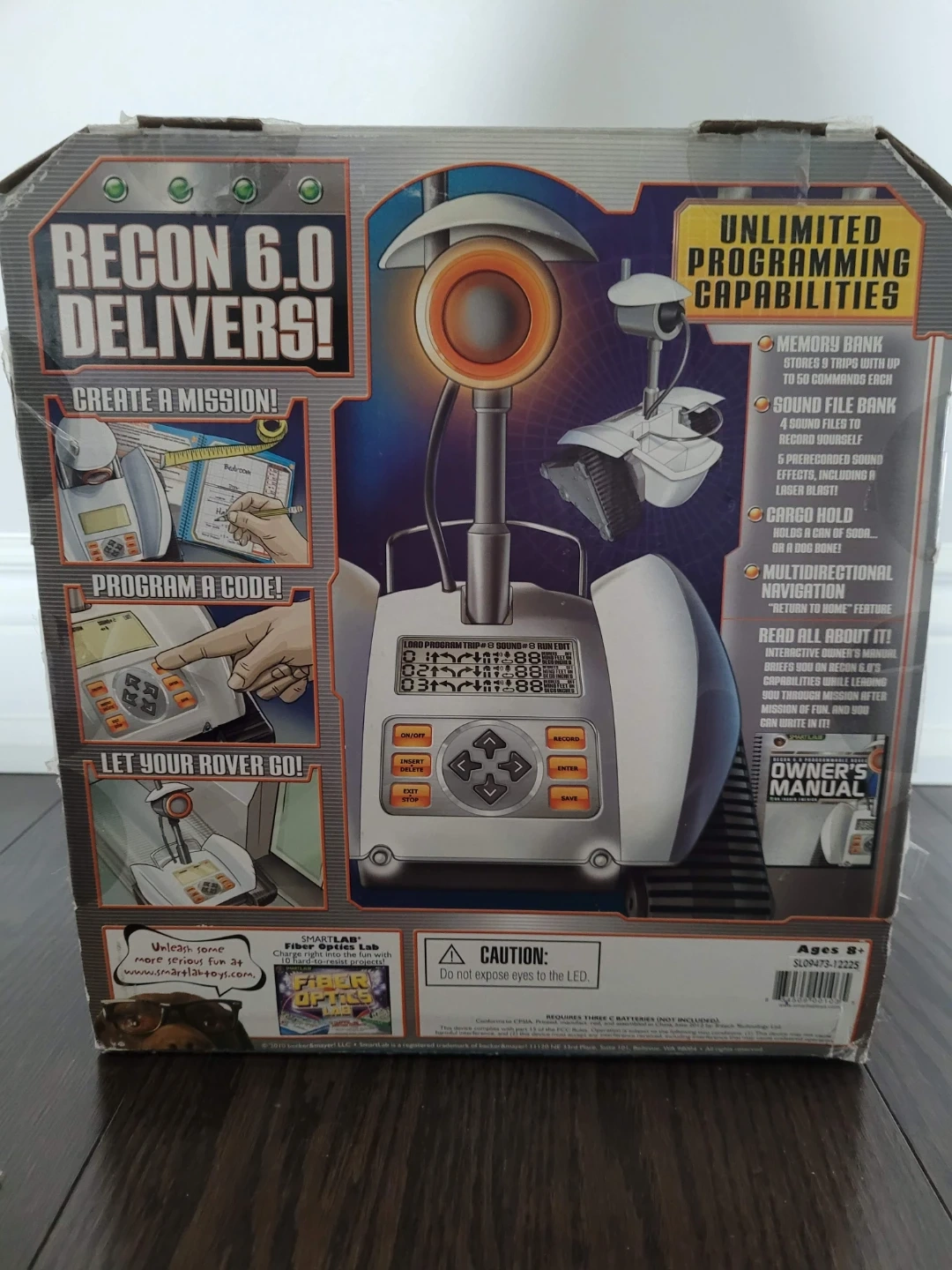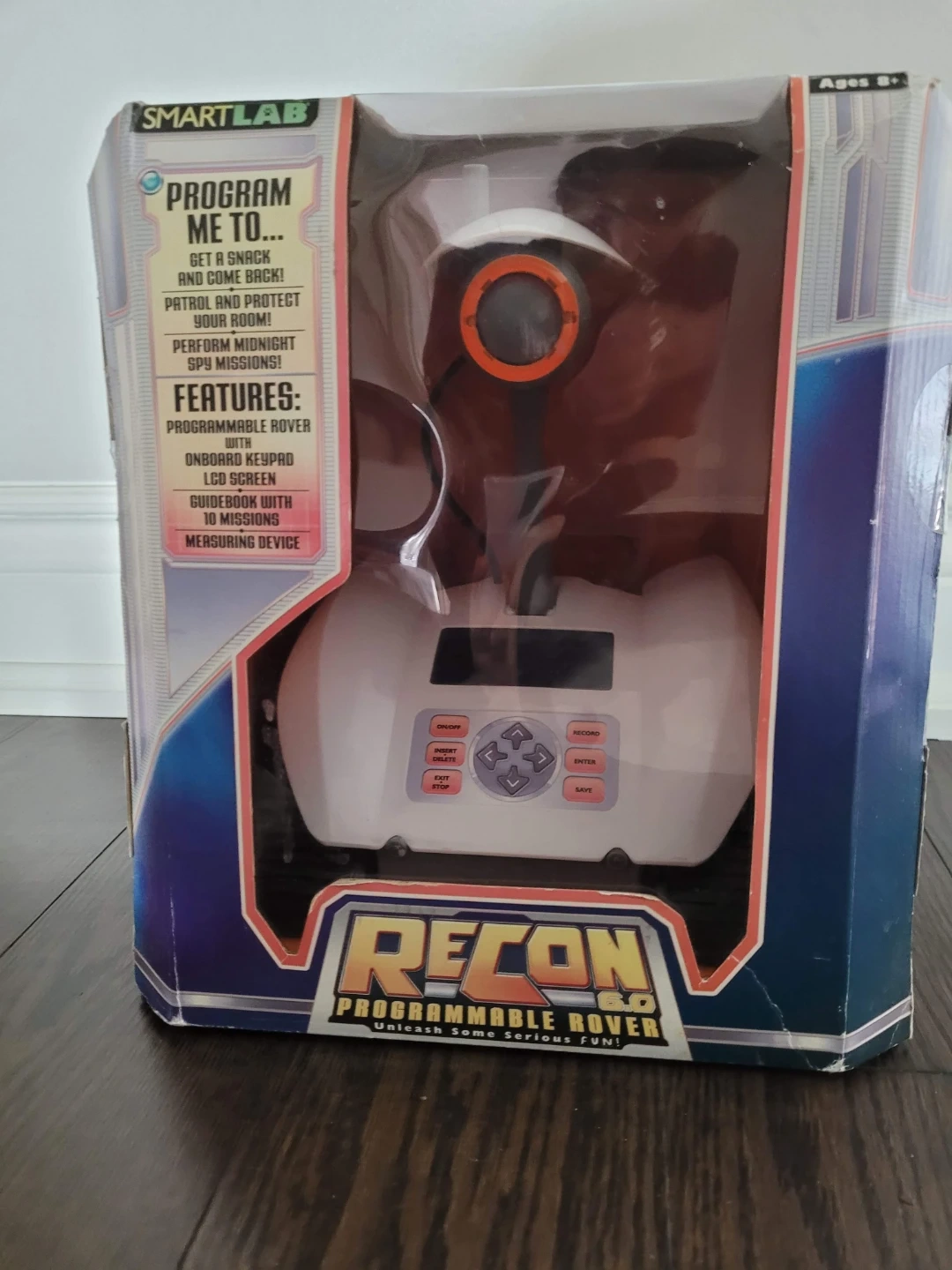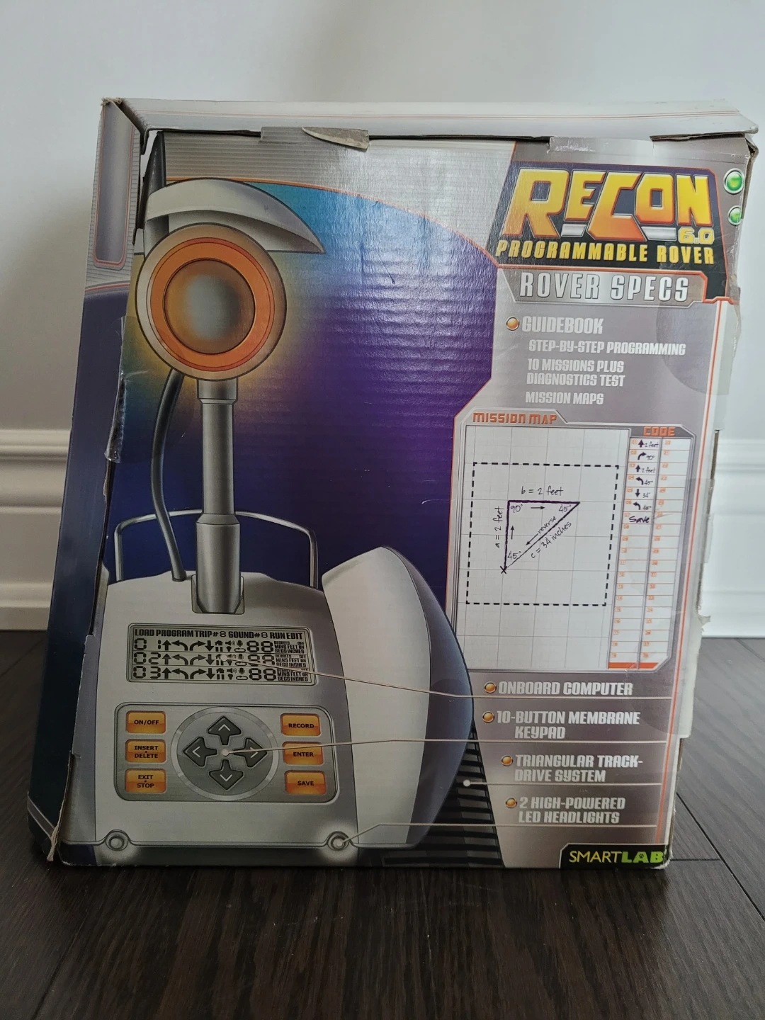 Selling a SmartLab Recon 6.0 Programmable Rover! It's a programmable rover with an onboard keypad and LCD screen. It also comes with a guidebook with 10 missions and a measuring device. Get ready to patrol and protect your room and perform midnight spy missions!