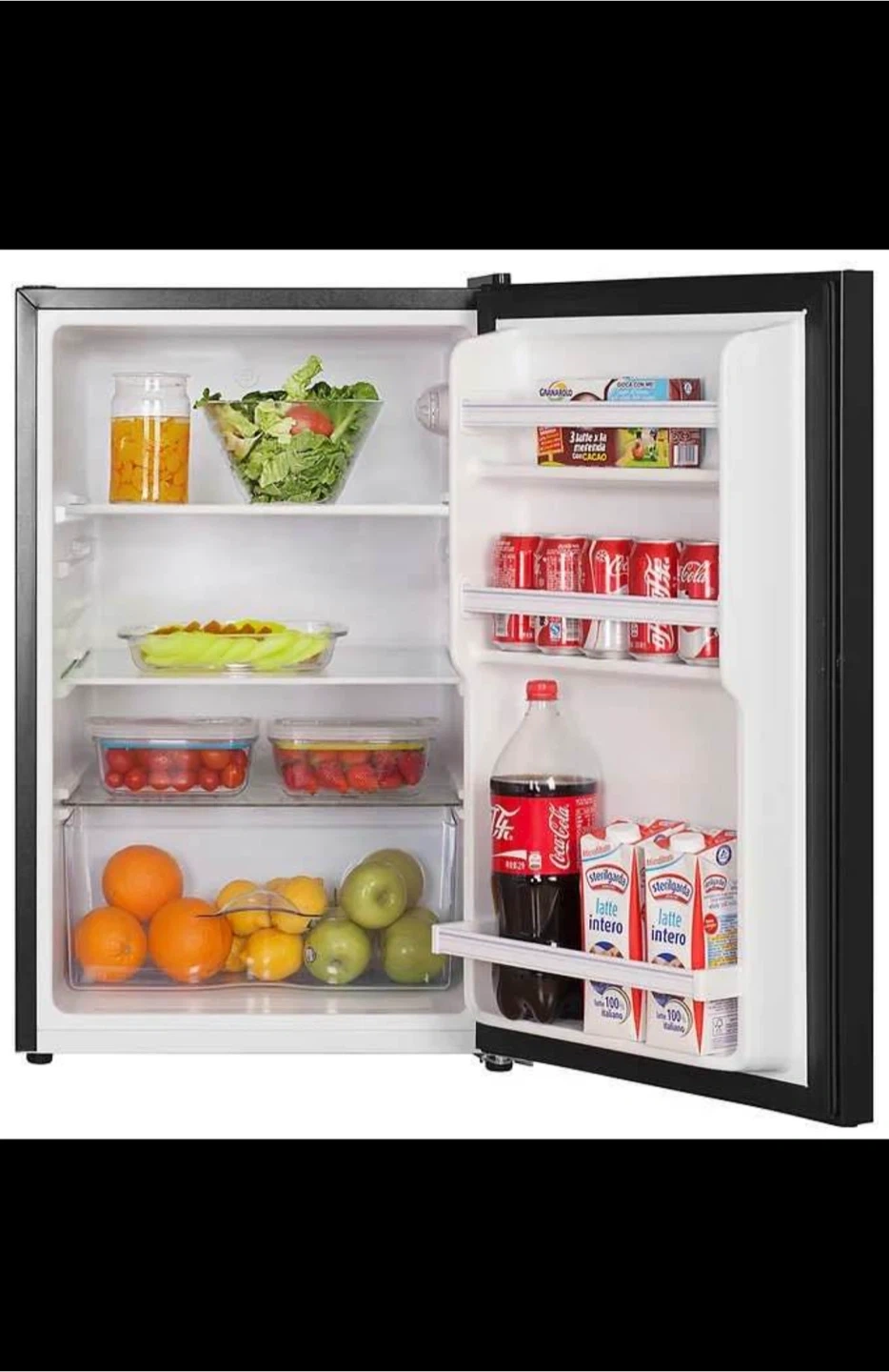 4.4 Cu. Ft. Compact Refrigerator. It's the perfect size for a small office, rec room, guest house, or man cave. Measuring at 32.3" high, 21.3" deep and 20.4" wide, the compact fridge comes built with a reversible door for any type of room set up.