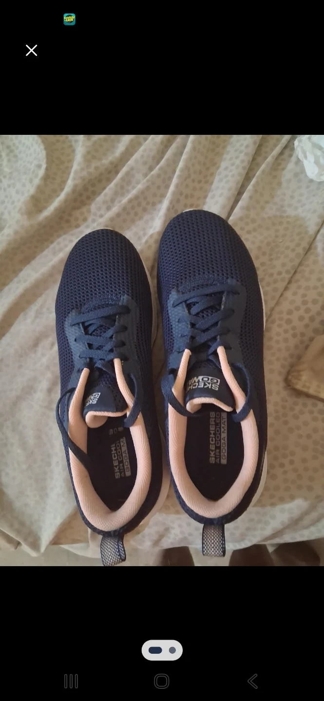 Selling a pair of Skechers GO GOWalk shoes for women. They feature air-cooled Goga Mat technology for extra comfort. These are great for everyday wear or light workouts