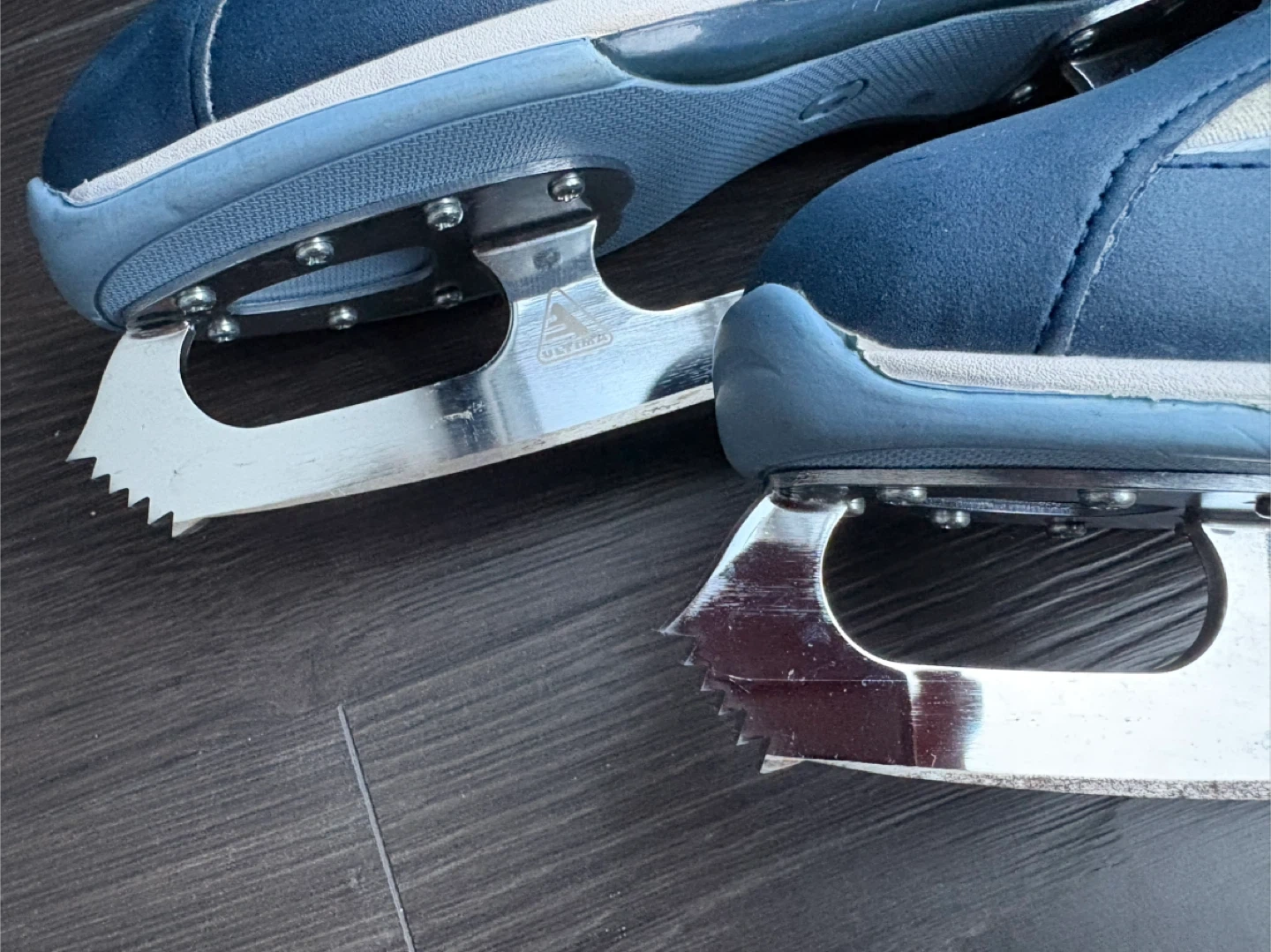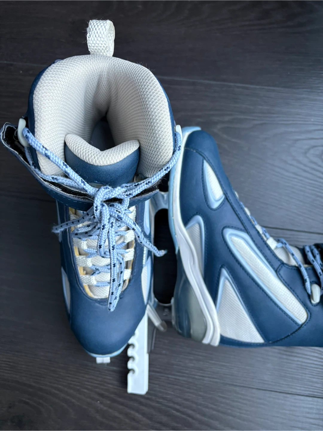 Comfortable recreational figure skates in excellent like new condition. Used gently only a few times. These modern ice skates have a comfortable padded design and a simple lacing system with a velcro for a secure fit. Great ankle support. Ultima Mark IV blade. A pair of white skate guards (shown) is included!