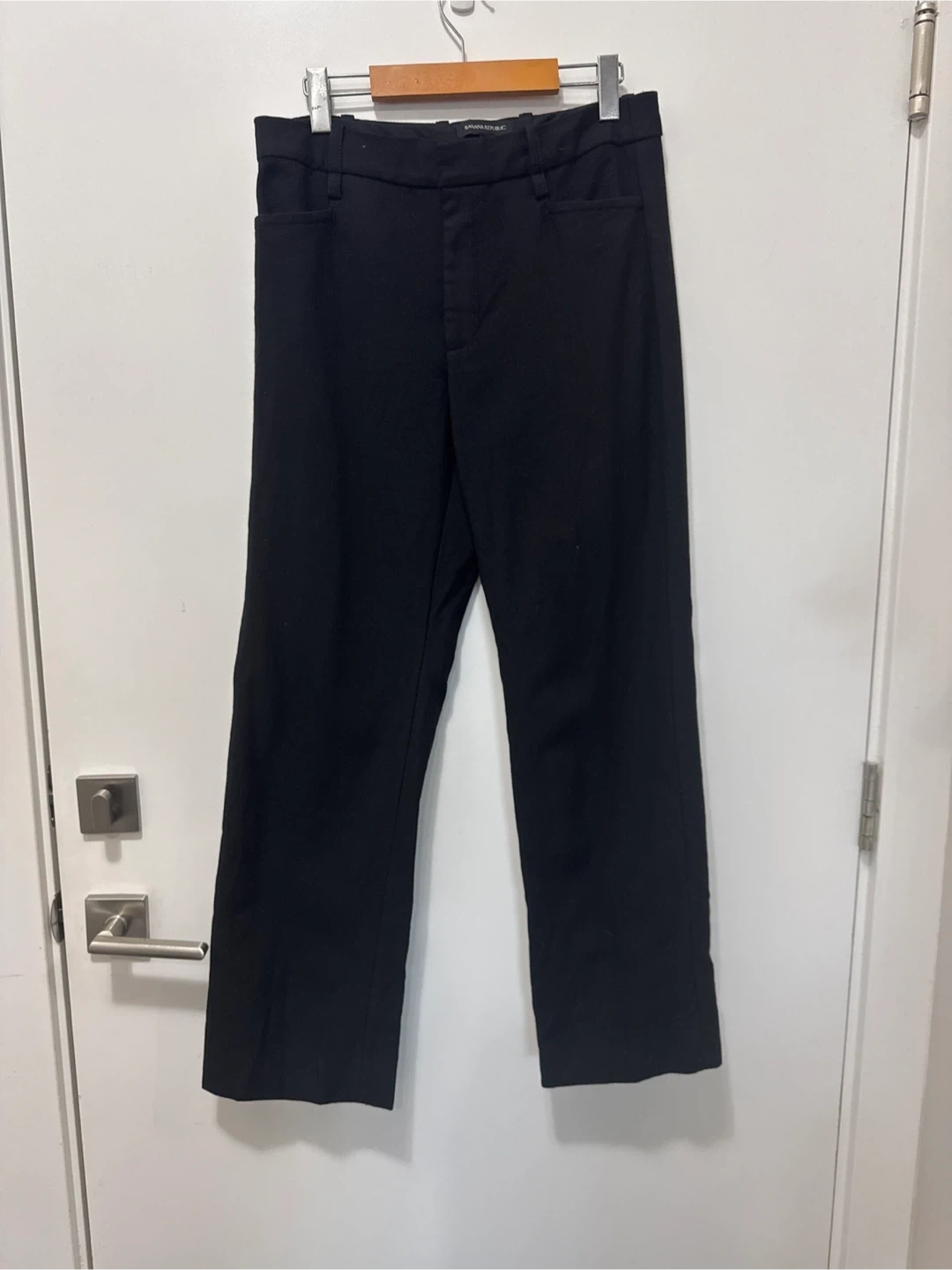 No issues just dont need so many pants. Lightly worn. Wrinkled from storage. Wide leg. 100% wool. Machine wash & hang dry