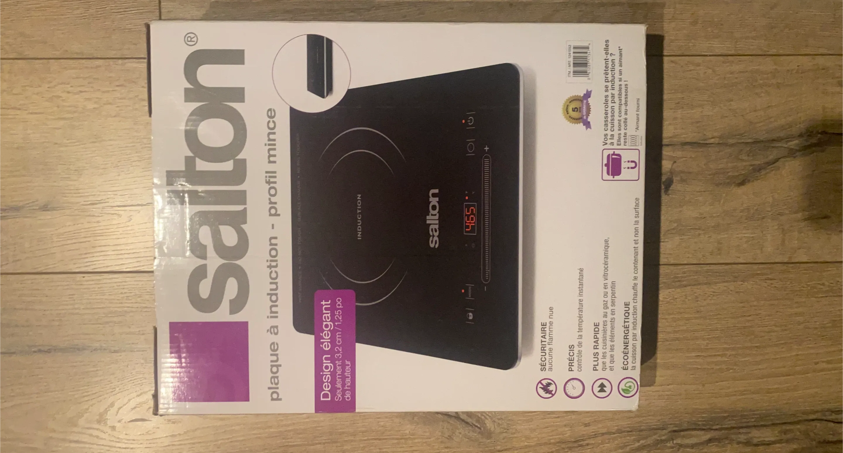 I'm selling a brand new Salton induction cooktop, still in its original box! It features a sleek design, only 3.2 cm / 1.25 inches in height.