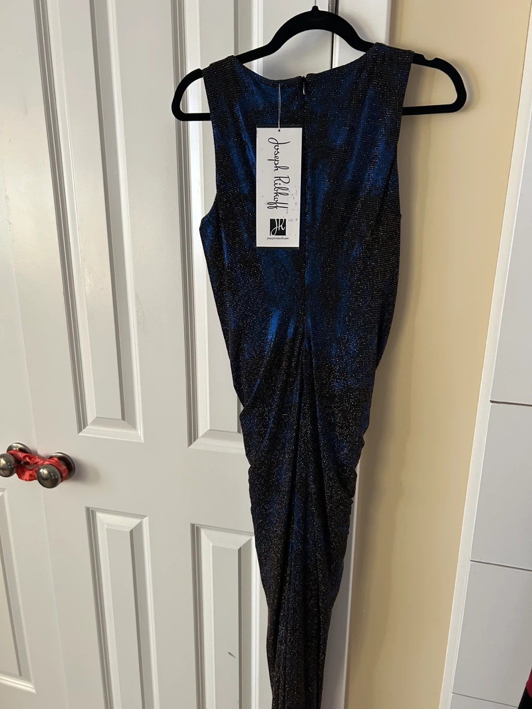 Selling a beautiful Joseph Ribkoff dress in size M. It's a stunning blue colour with a unique design. Perfect for a night out or a special occasion!