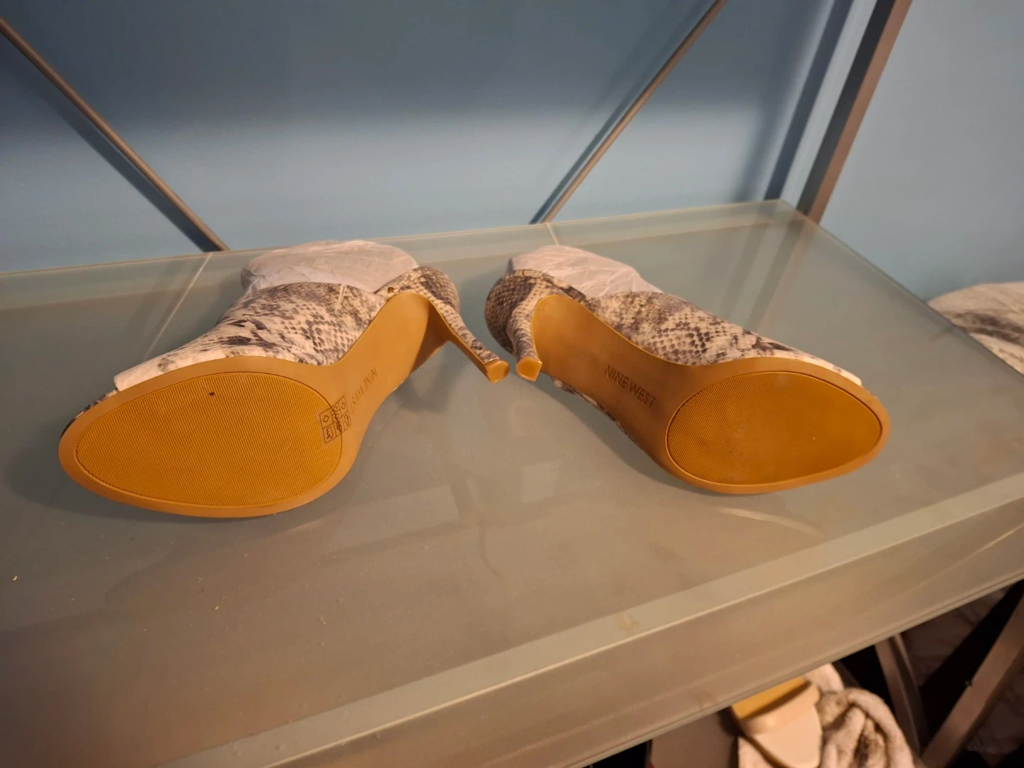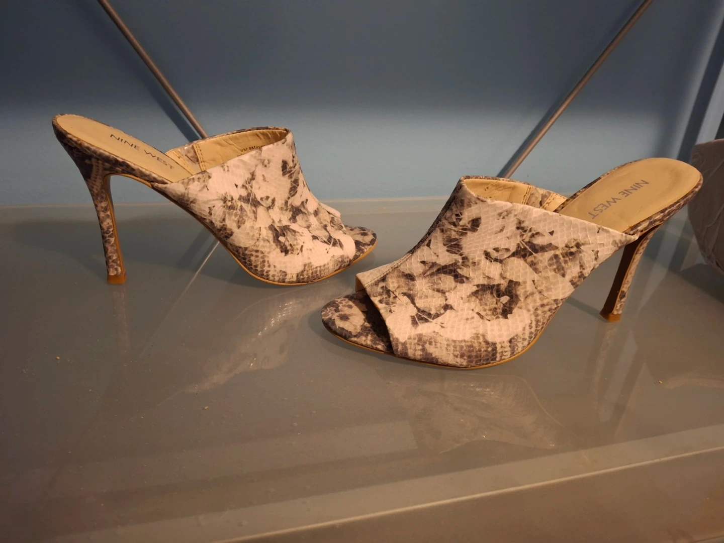 These Nine West heels have a unique snakeskin print that's sure to turn heads! They're in great condition and ready for a new home. Perfect for dressing up any outfit!