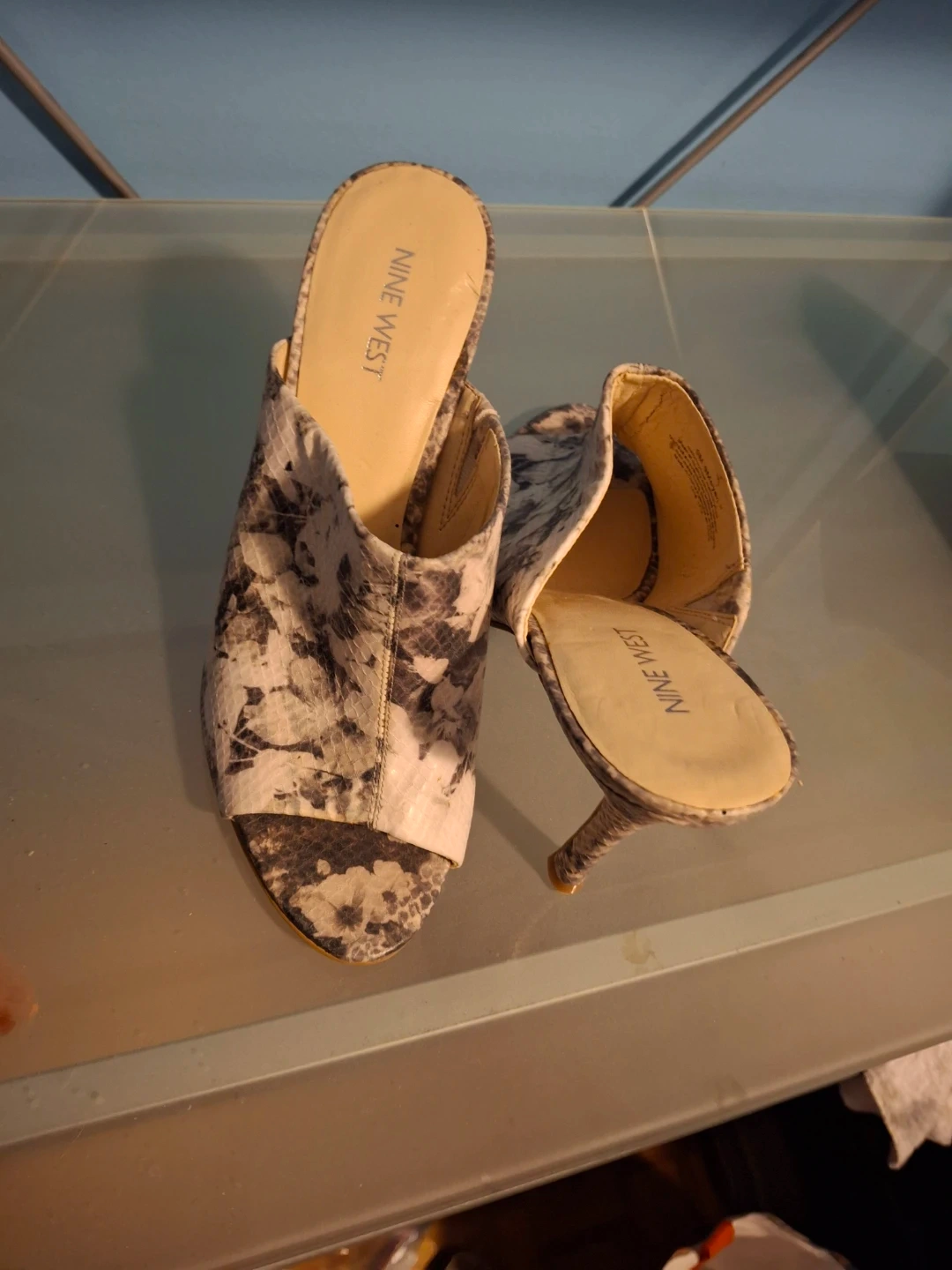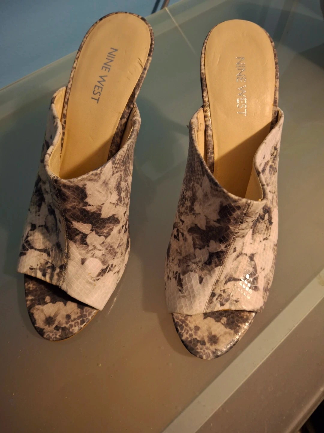 These Nine West heels have a unique snakeskin print that's sure to turn heads! They're in great condition and ready for a new home. Perfect for dressing up any outfit!