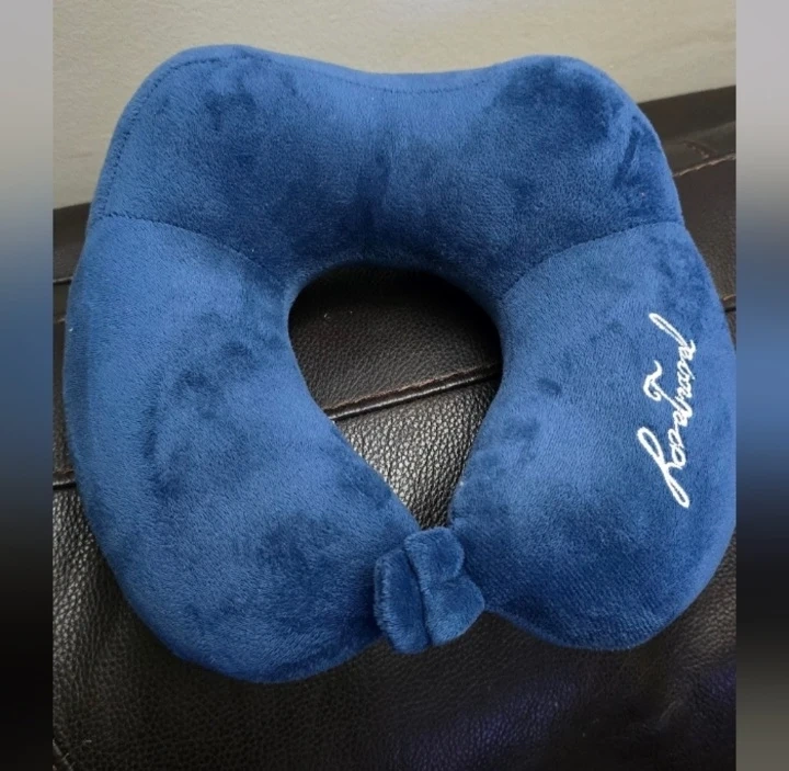 Here's a comfy navy blue travel neck pillow! It looks like it's in great shape and ready for your next trip. Perfect for long flights or car rides to keep you cozy and supported