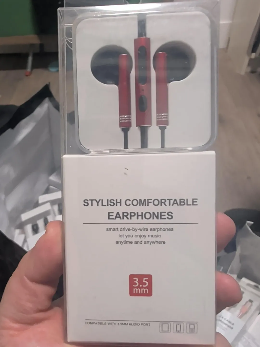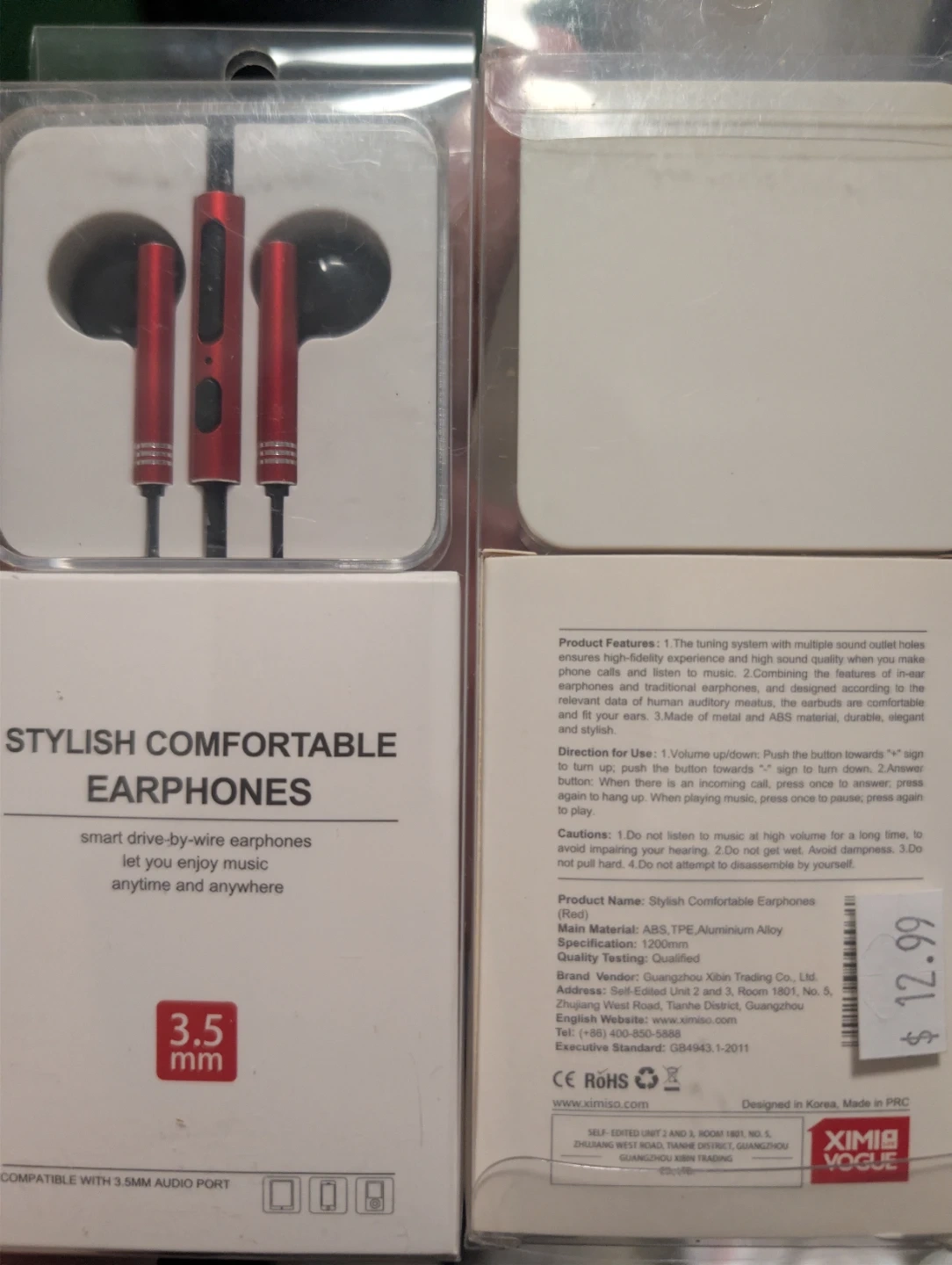 Selling a brand new pair of Ximivogue Stylish Comfort Earphones! These smart drive-by-wire earphones let you enjoy music anytime and anywhere. They are compatible with a 3.5mm audio port. The materials are ABS and TPE, with an aluminum alloy. They're designed in Korea!