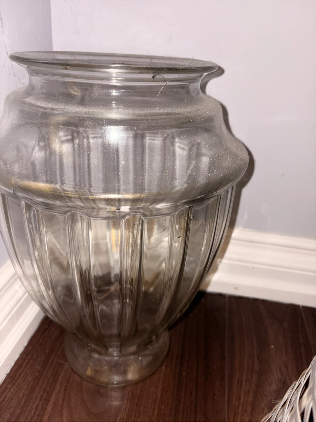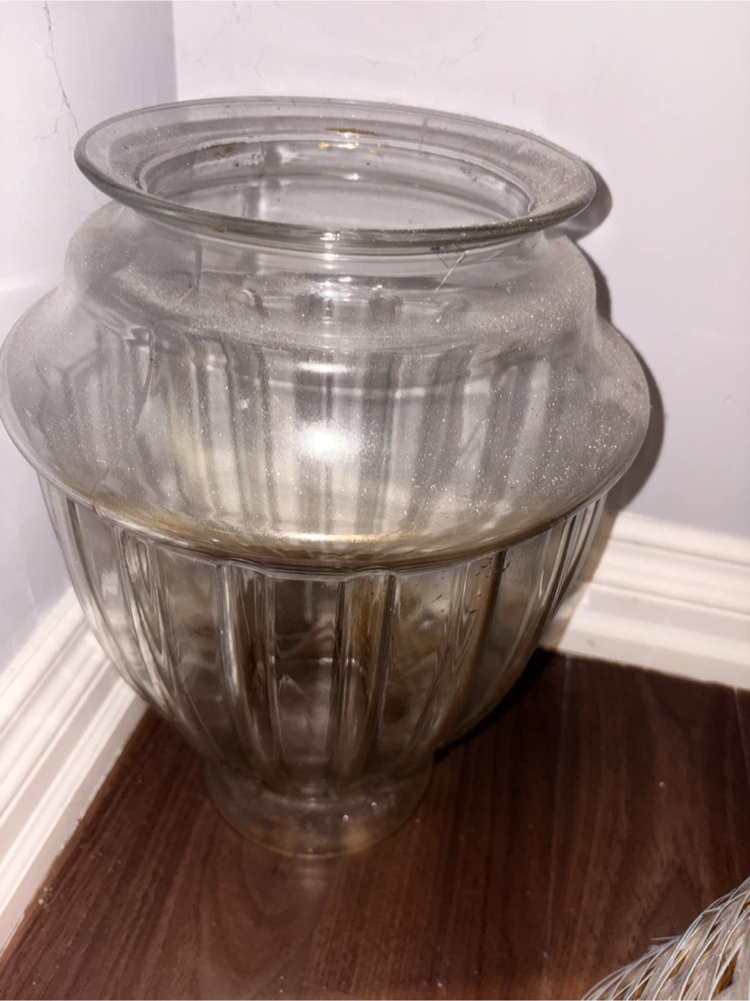 Selling a floor glass vase. Need to make some space. You can put it as it is on the floor or use it as a centerpiece on a table and adorn it with flowers. It has a unique shape and could be used for flowers or as a decorative item. It's in mint condition