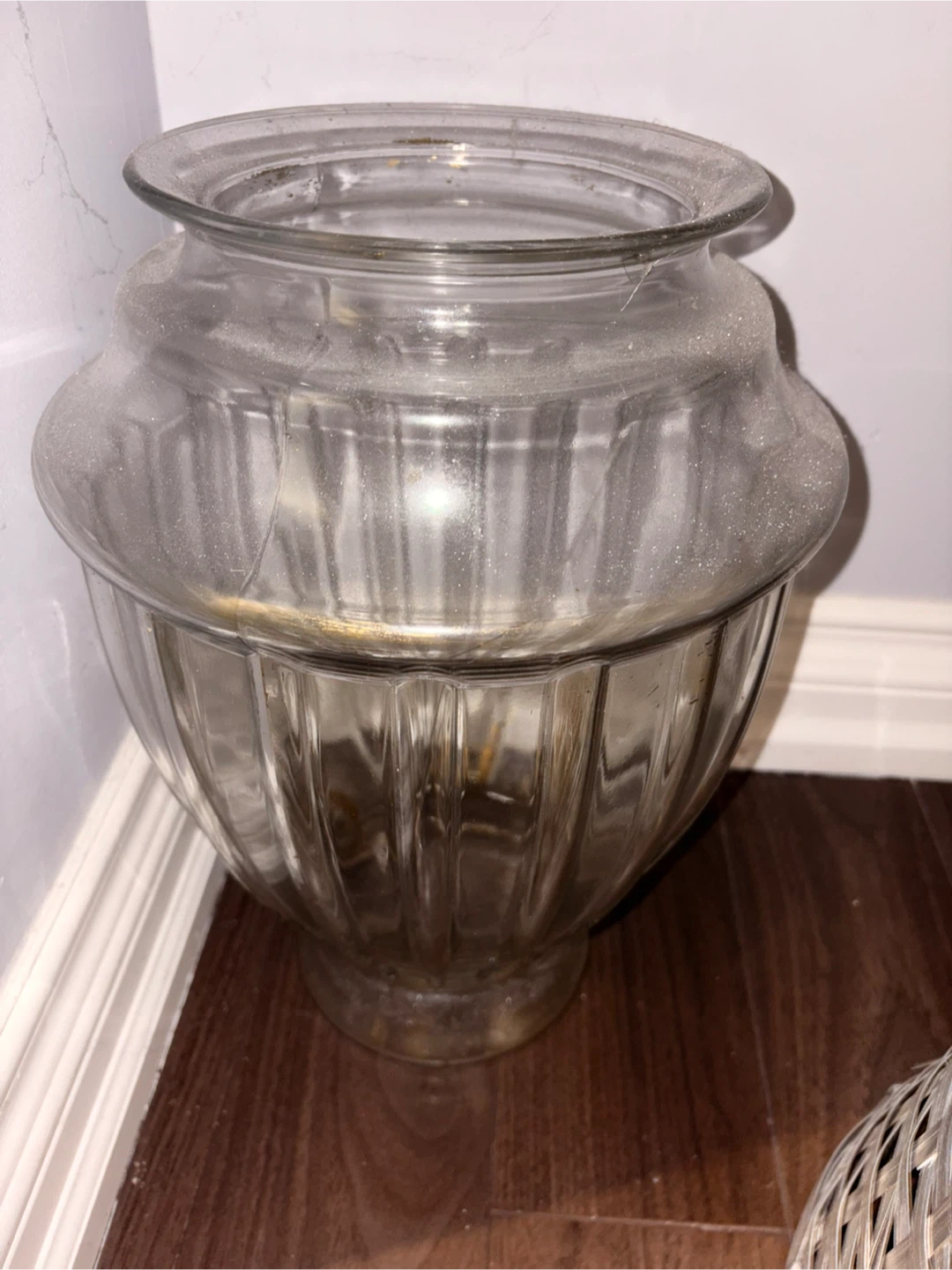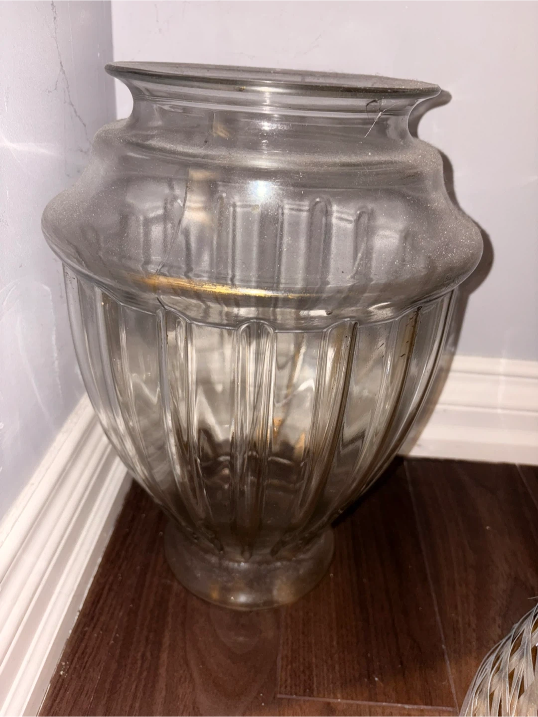 Selling a floor glass vase. Need to make some space. You can put it as it is on the floor or use it as a centerpiece on a table and adorn it with flowers. It has a unique shape and could be used for flowers or as a decorative item. It's in mint condition