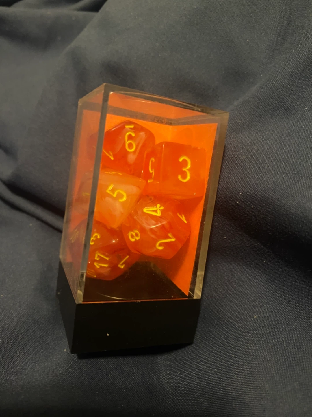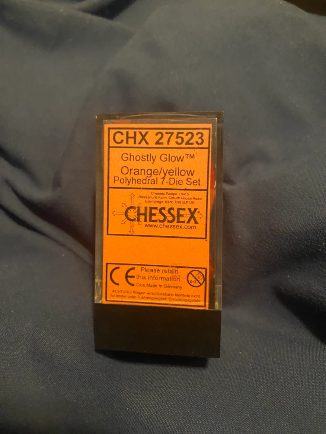 1 / 21 / 2Buy & SellChessex Ghostly Glow Orange/Yellow Polyhedral 7-Dice SetChessex Ghostly Glow Orange/Yellow Polyhedral 7-Dice Set$5Selling a Chessex Ghostly Glow Orange/Yellow Polyhedral 7-Dice Set. It comes in its original packagingConditionLike newWHERE TO MEETCheck LocationView MapSELLERverifiedRainSt. Lawrence22416 reviews1 chats·2 favorites·15 viewsSEND CHAT TO SELLERHi Rain! I’m interested in your listing.Hi Rain! I’m interested in your listing.Get the Karrot app to chatSign In to chat