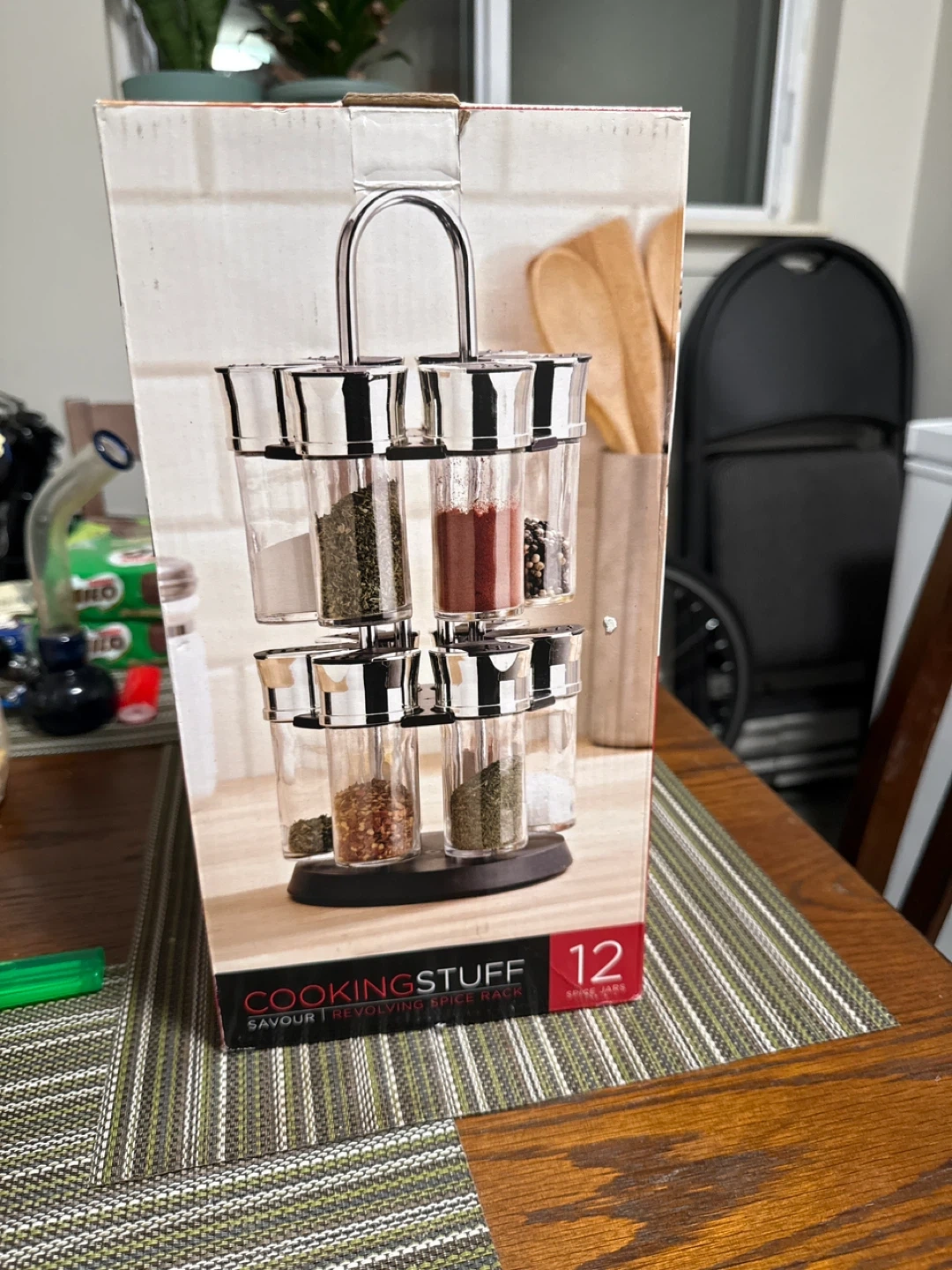 Selling a Cookingstuff Savour revolving spice rack, complete with 12 spice jars! It's a great way to keep your spices organized and easily accessible while cooking