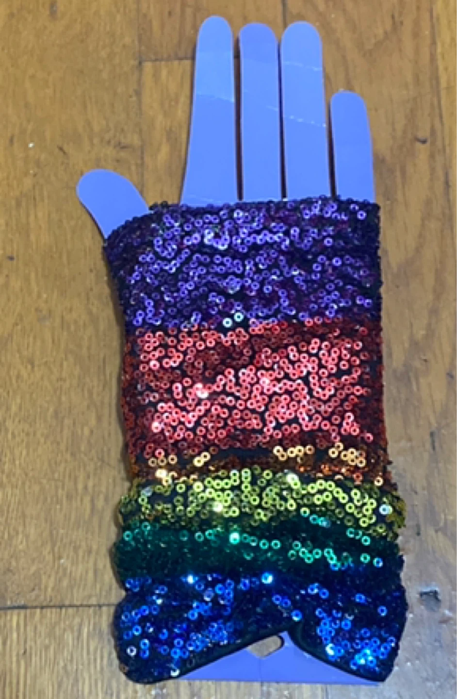 Add some sparkle to your outfit with this fun rainbow sequin wristband! It features a vibrant array of colors and shimmering sequins.