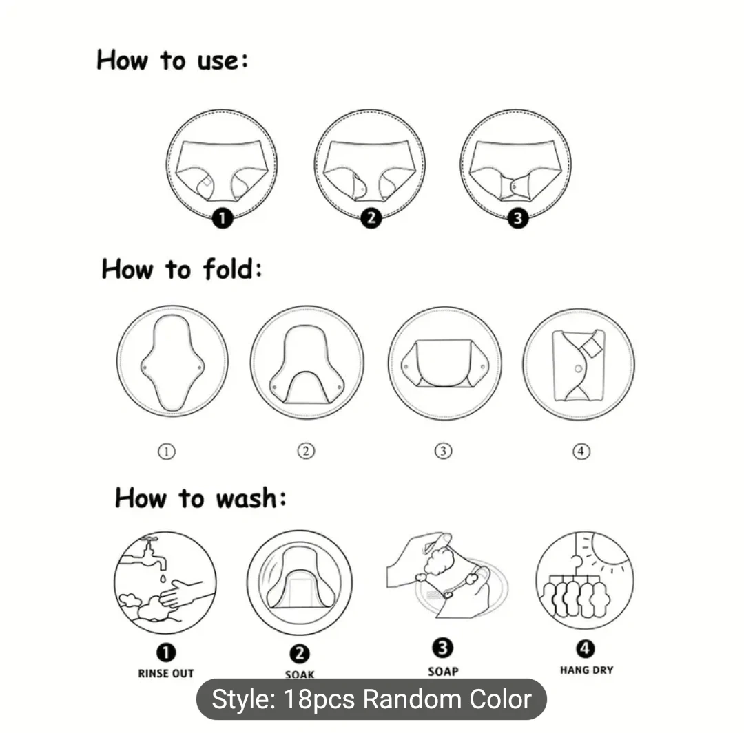 Pack Reusable Cloth pads Soft and Comfortable Hygiene Underwear for Women and Elderly, Fiber, Fabric, Close-Fitting Design, Durable Sewing