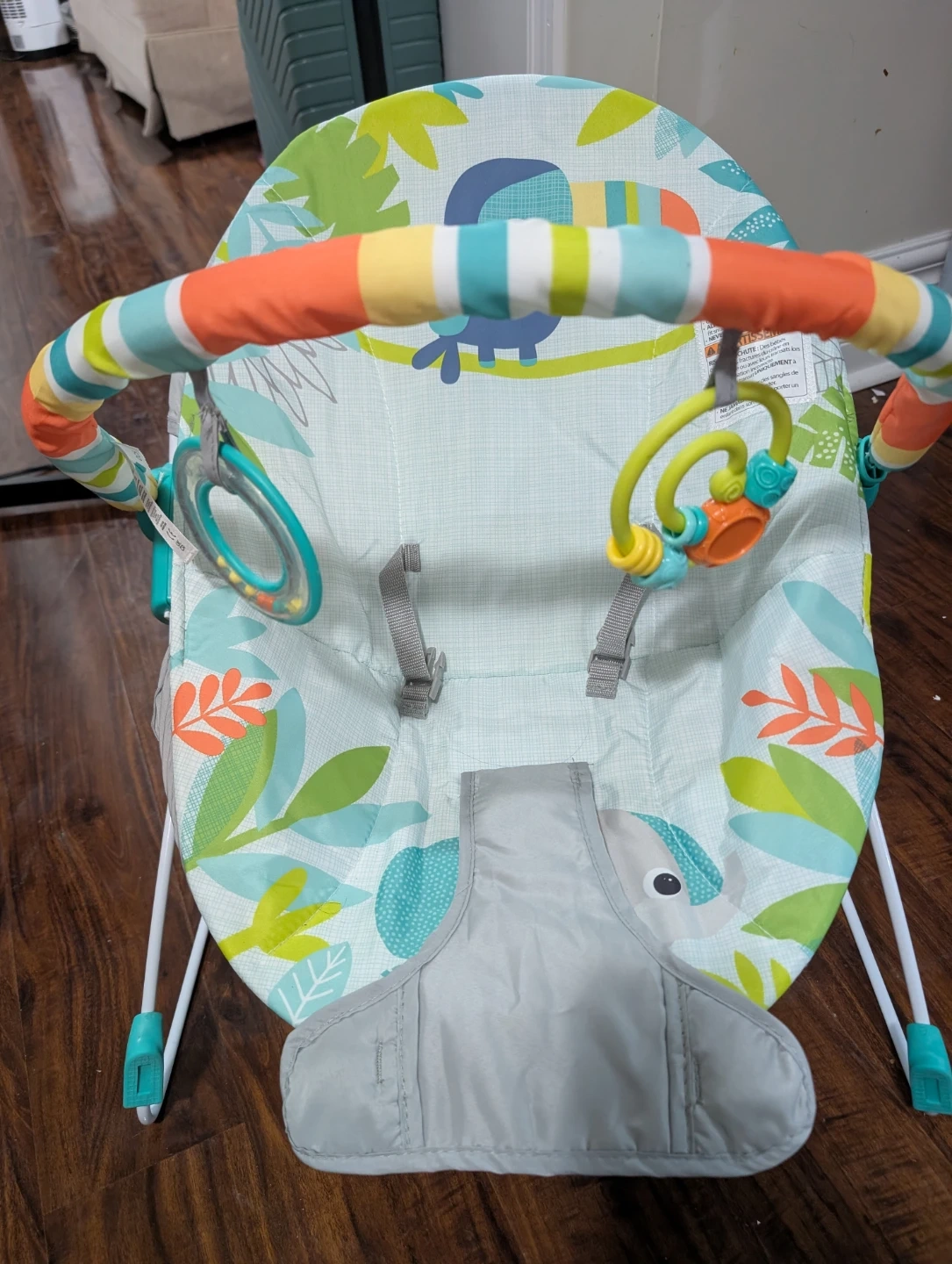 Selling a Kids II Rainforest Vibes Vibrating Bouncer. It's in great condition and ready for a new little one! The model number is 12227. This bouncer features a cute toucan design and provides gentle vibrations to soothe your baby. Only used once.