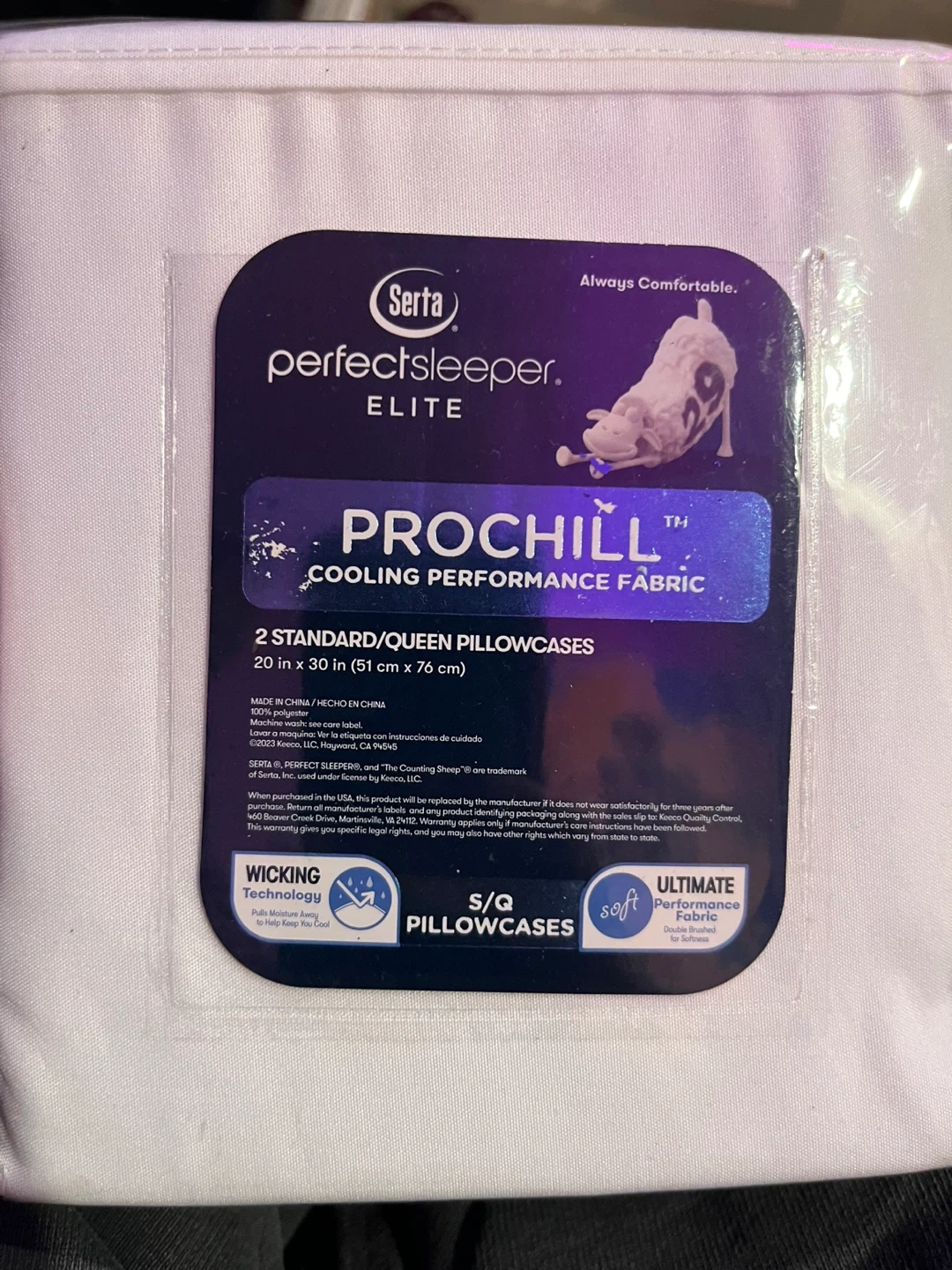I'm selling a set of Serta Perfect Sleeper Elite pillowcases. They are the Prochill cooling performance fabric type and come with 2 standard/queen size pillowcases (20 in x 30 in / 51 cm x 76 cm). These pillowcases feature wicking technology and ultimate performance fabric!