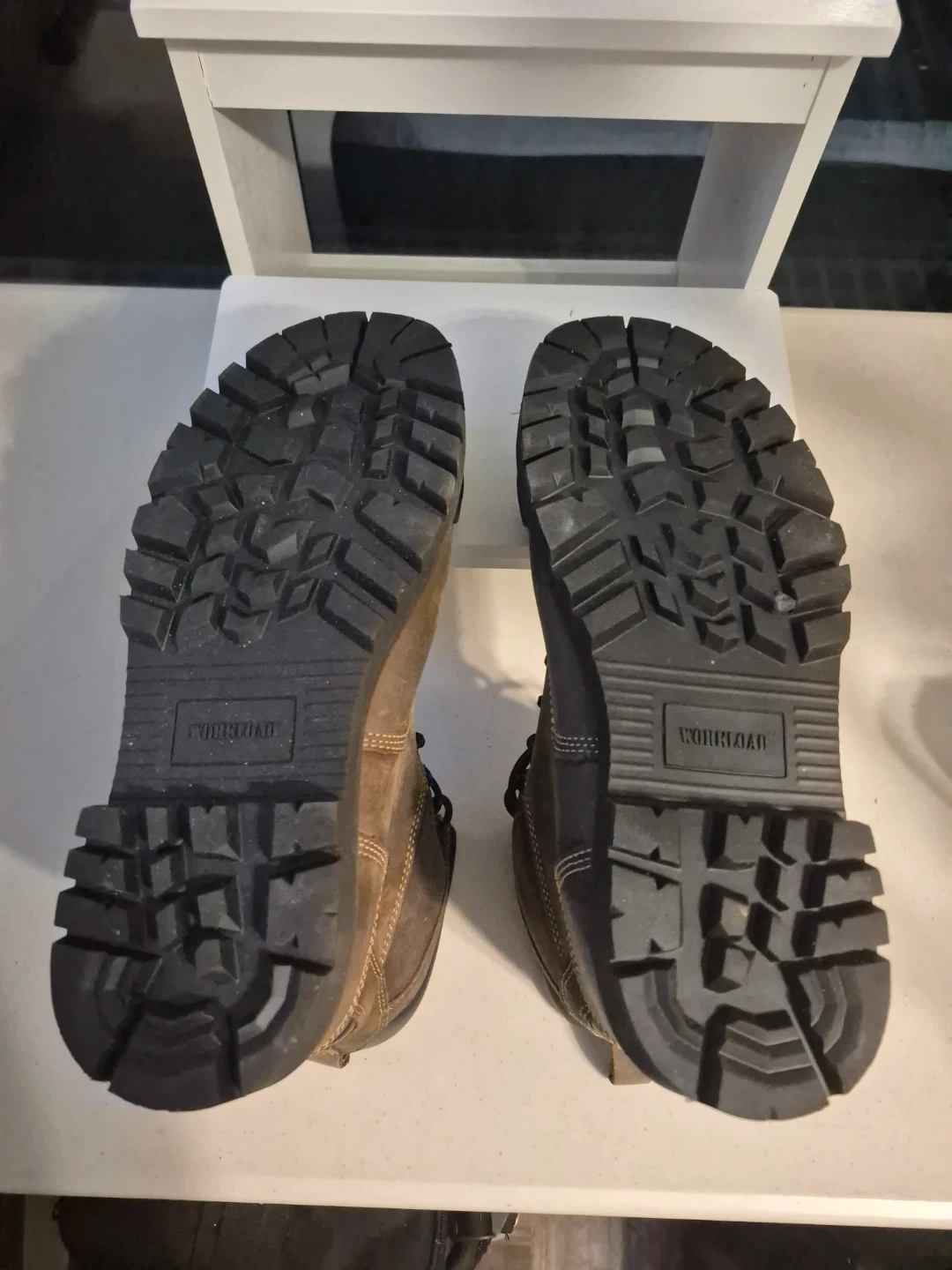 Selling Durable Workload brown leather work boots with steel toe protection — built for comfort, safety, and long‑lasting wear. These boots are perfect for construction, warehouse, landscaping, farming, or any job that demands tough footwear.