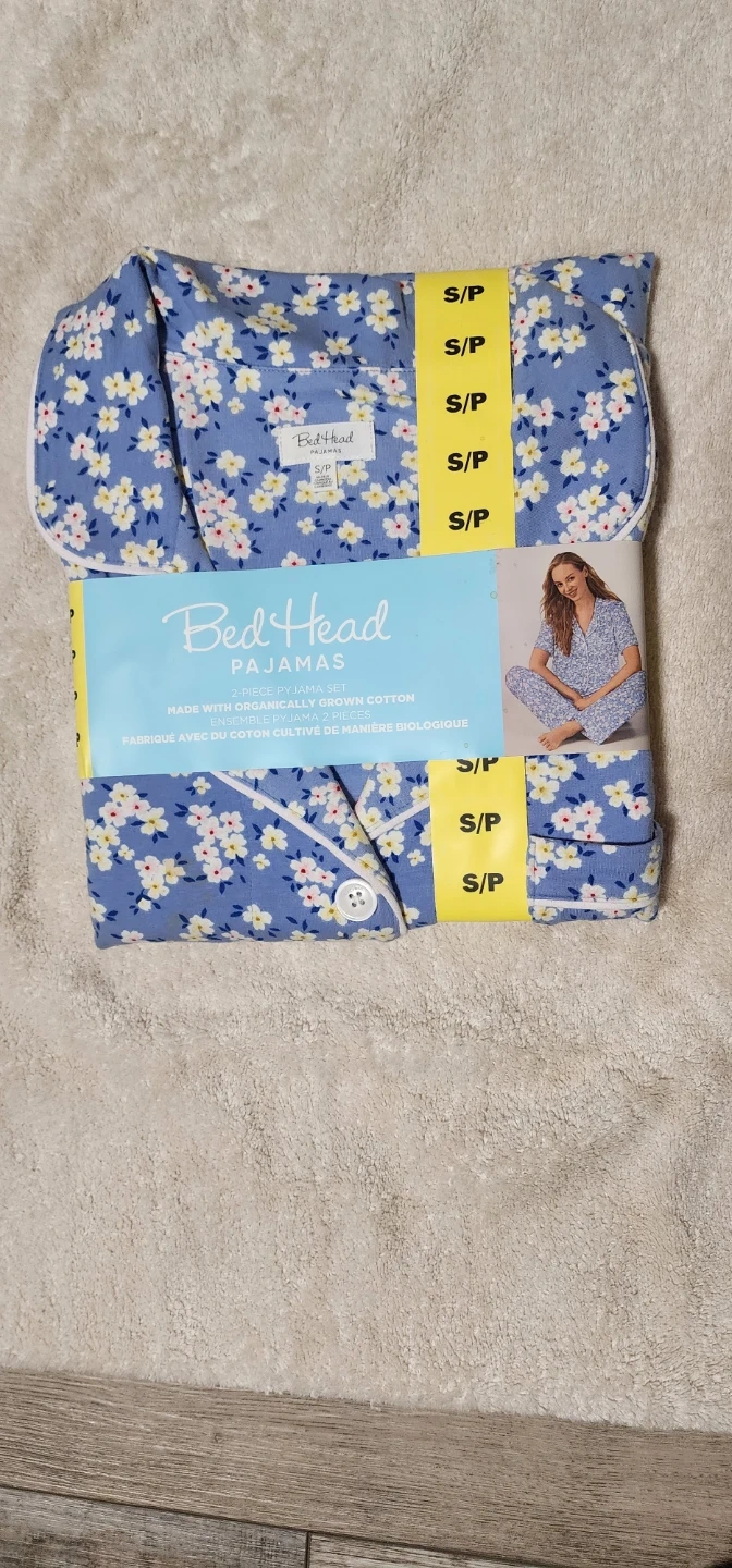 Brand new in packaging, never opened! These adorable Bed Head pajamas are a 2-piece set made with organically grown cotton. They're a size S/P (small/petite) and feature a lovely floral pattern. Perfect for a cozy night's sleep!
