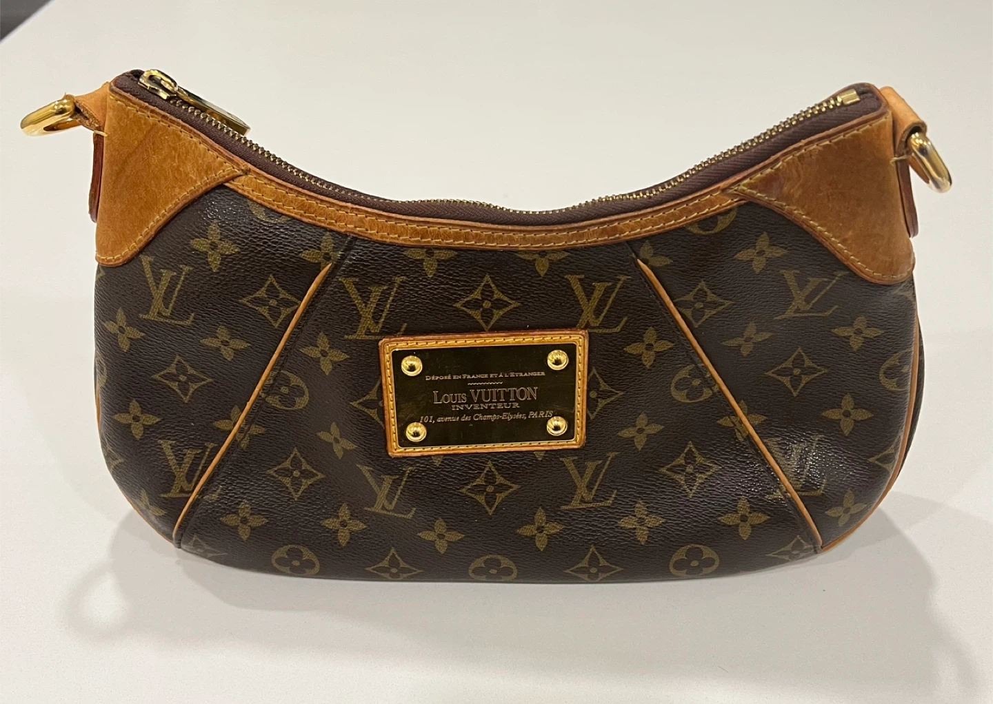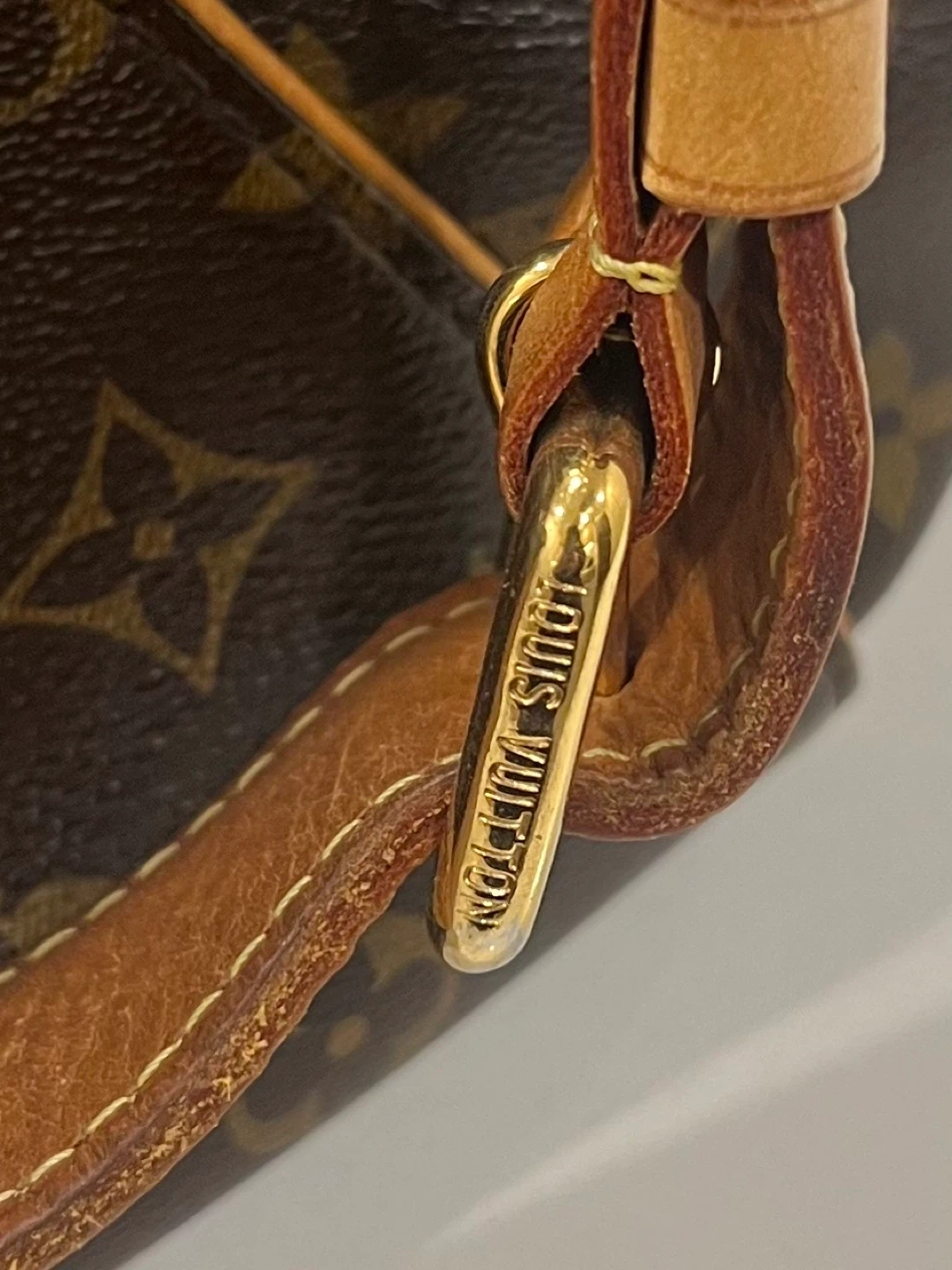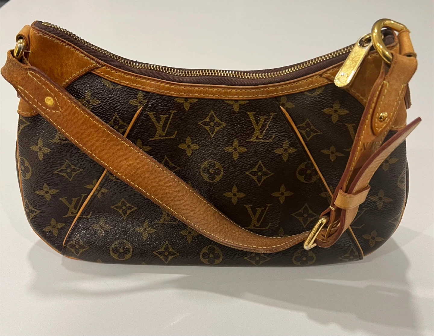 Selling a gently used Louis Vuitton handbag featuring the classic monogram pattern and leather trim. It's a stylish and versatile accessory for any occasion. The bag has a zip-top closure and interior pockets for organization.