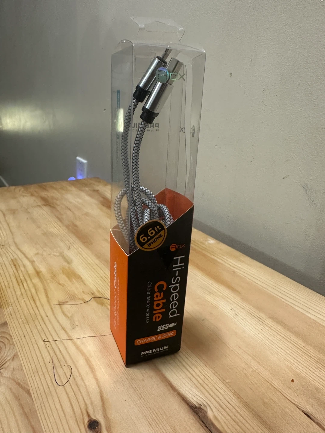 Selling a brand new Hi-Speed Cable for iPhone. It's 6.6ft long and designed for charging and syncing. Premium quality!