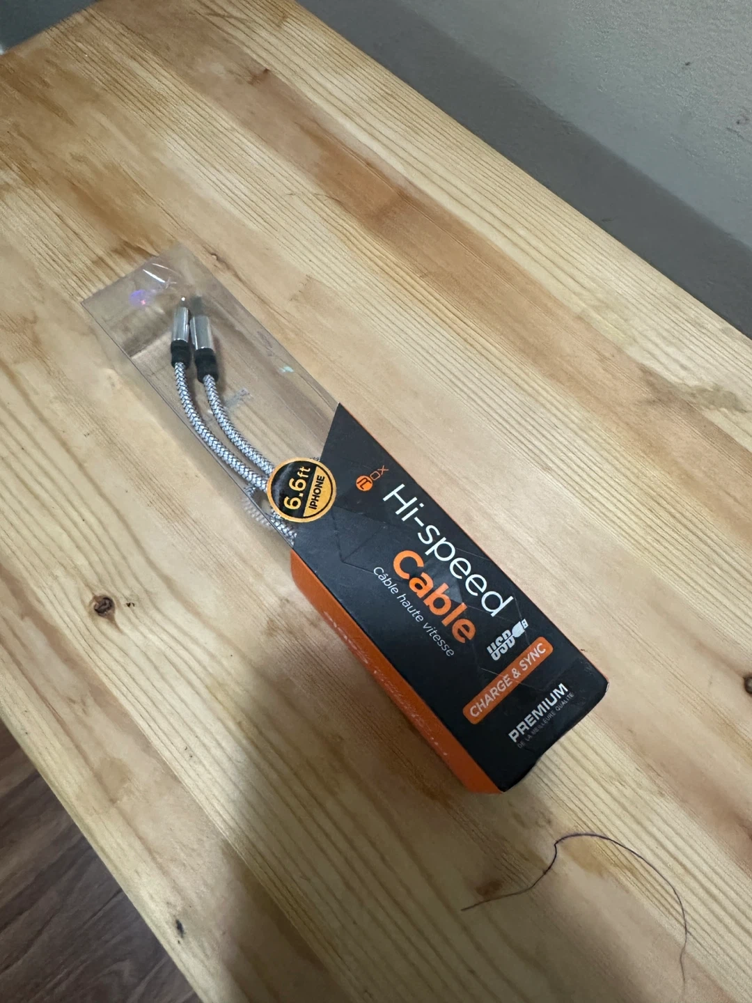 Selling a brand new Hi-Speed Cable for iPhone. It's 6.6ft long and designed for charging and syncing. Premium quality!