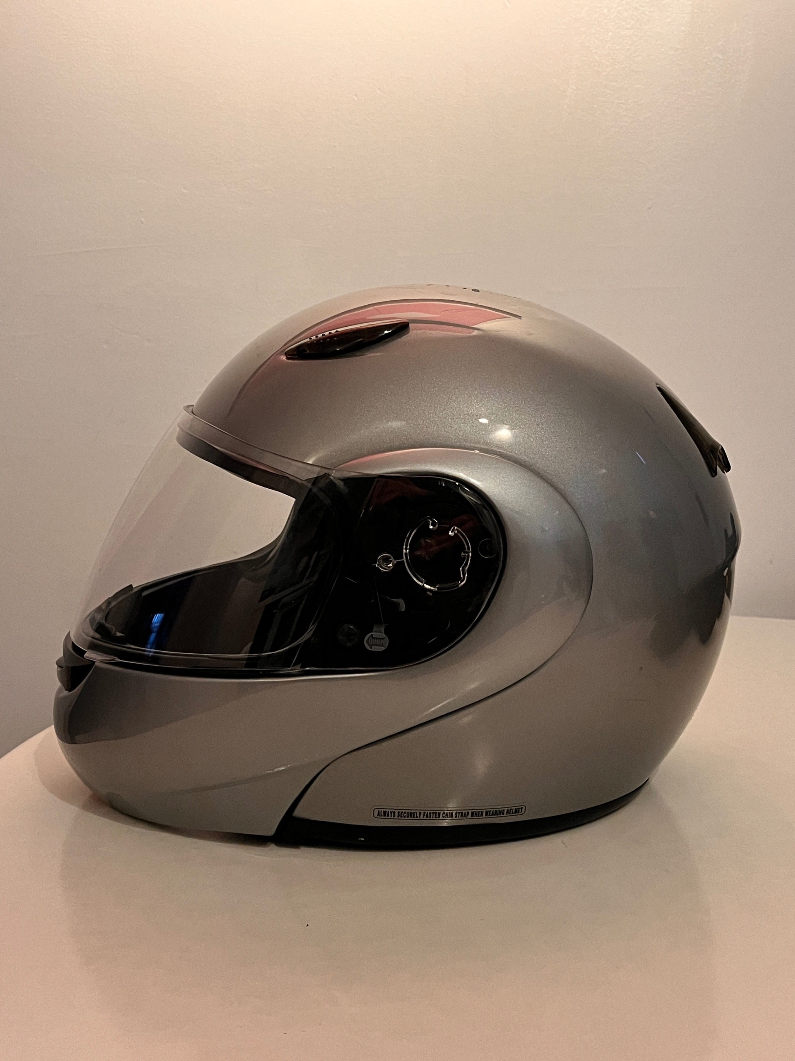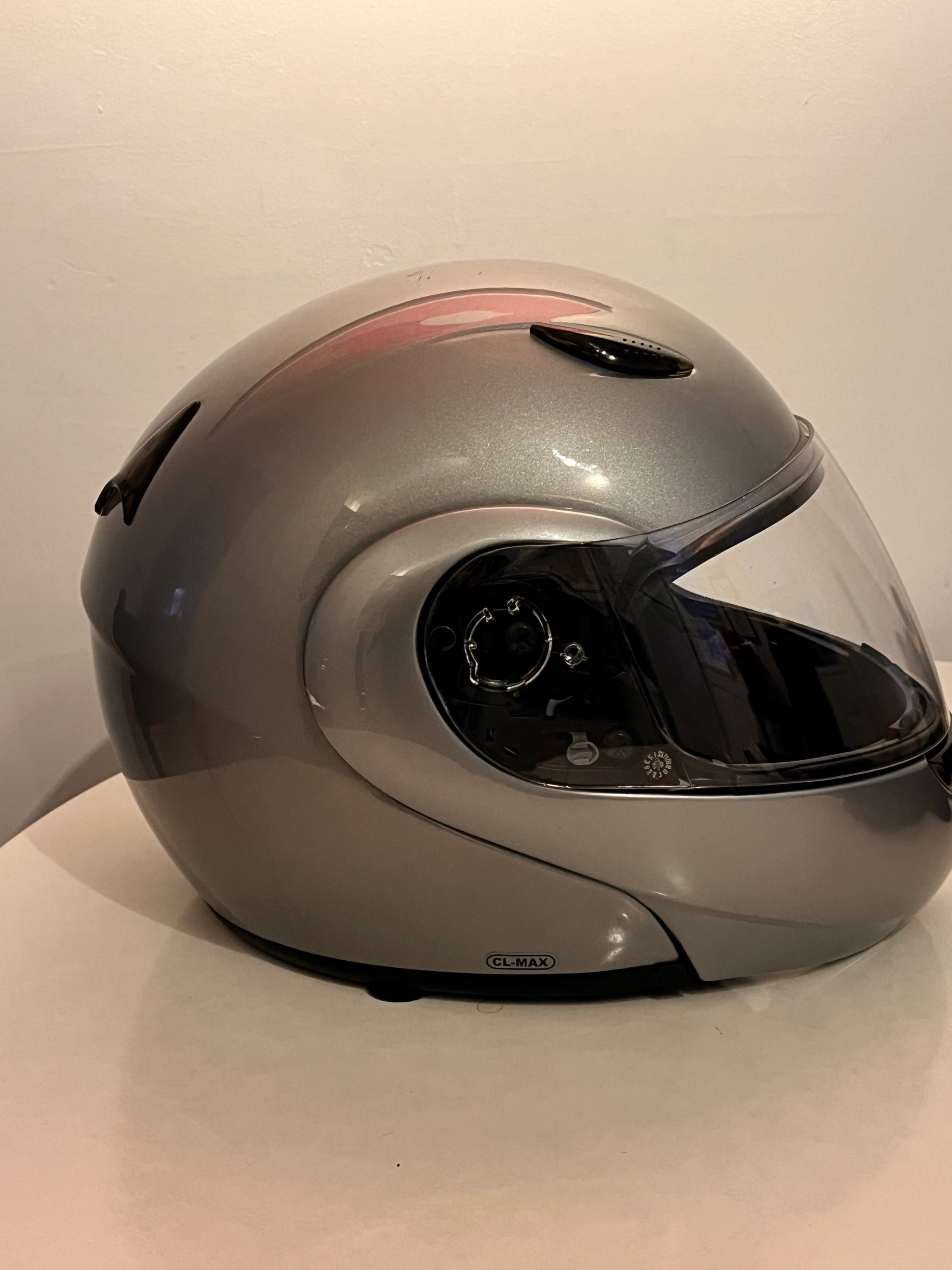 Selling a HJC CL-MAX modular helmet in silver. It's in good condition and ready for a new rider.