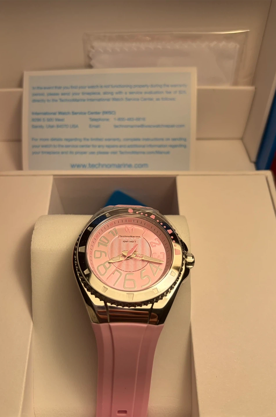 Selling a brand new TechnoMarine Lusse mare 38mm watch in pink! It comes with its original box and warranty information. This stylish timepiece is ready to add a pop of color to your wrist. Original price $299 . Cheaper than sale price at the store . Great deal beautiful watch ! Bracelets don’t come with it .i have added the blue TechnoMarine case for its protection for free .
