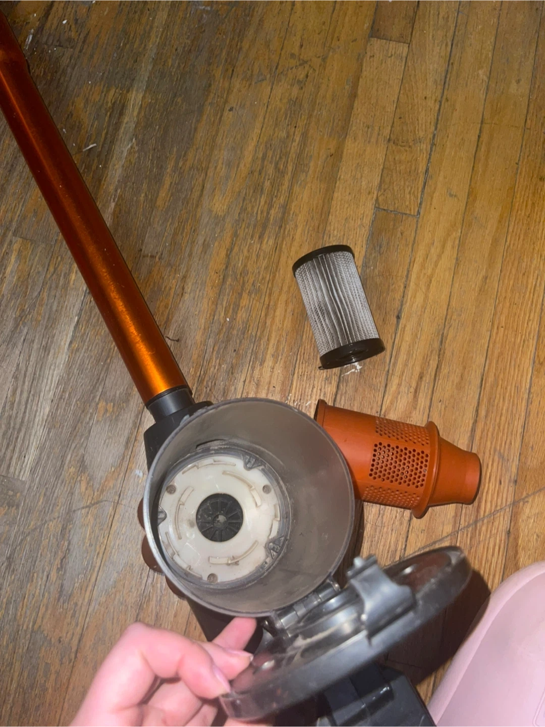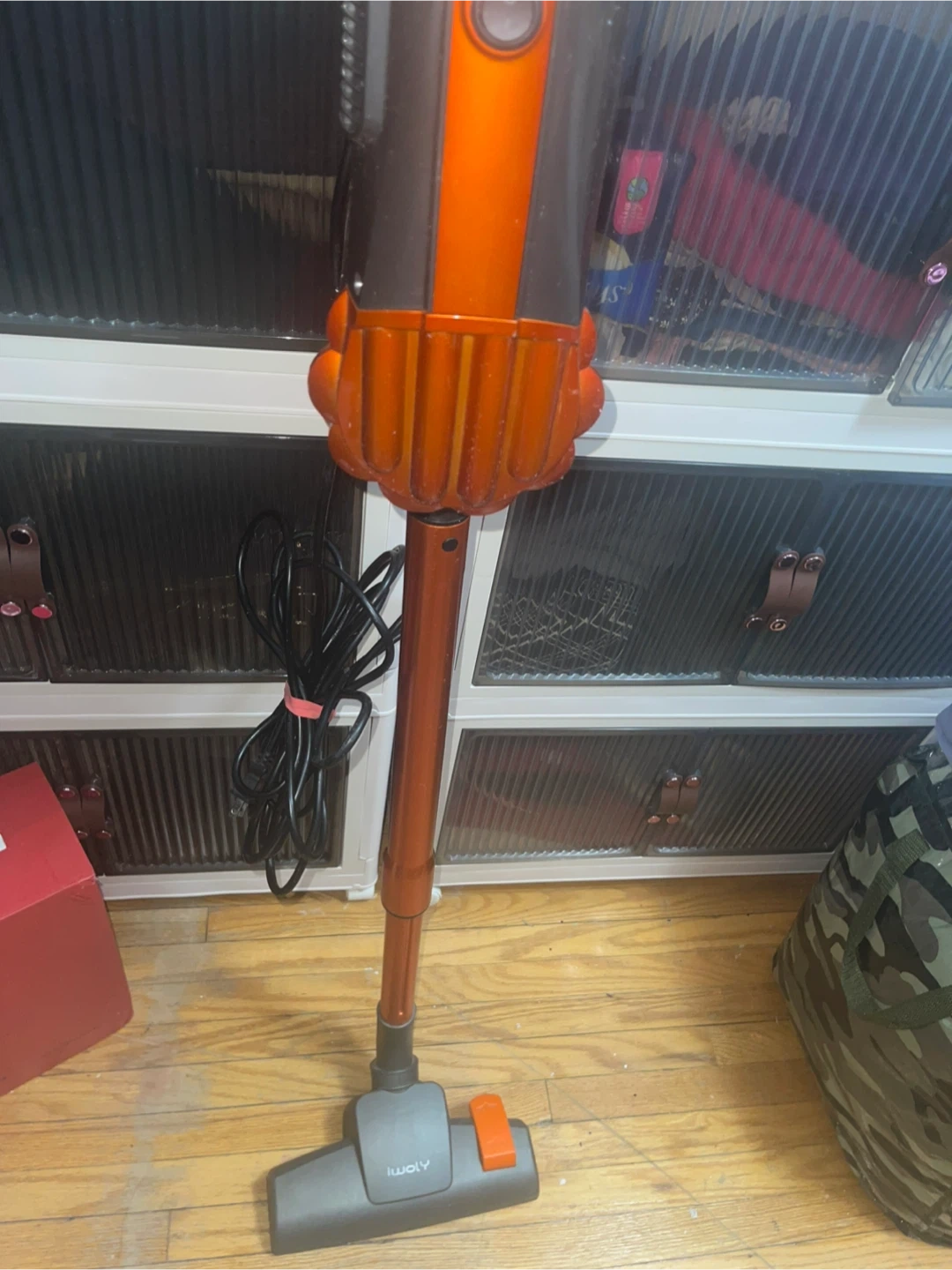 Selling an iWoly corded stick vacuum in orange and grey. It's in good working condition and ready to help keep your place clean.