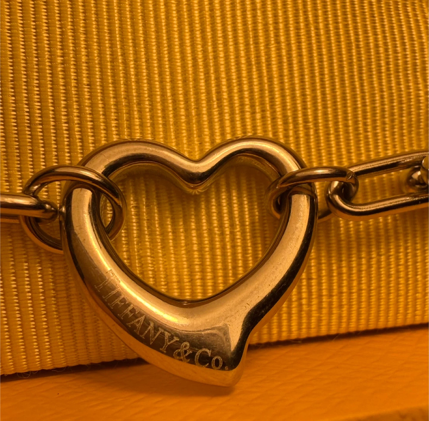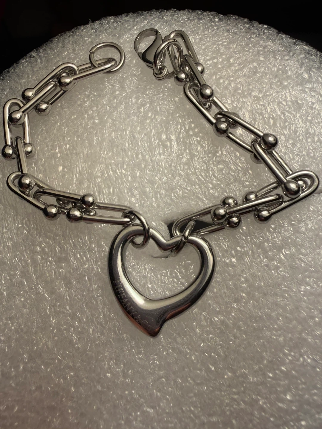 Selling a Upcycled Tiffany & Co. heart link The necklace is silver and features a heart pendant with the Tiffany & Co. logo engraved on it. It's in great condition and ready to be worn and enjoyed