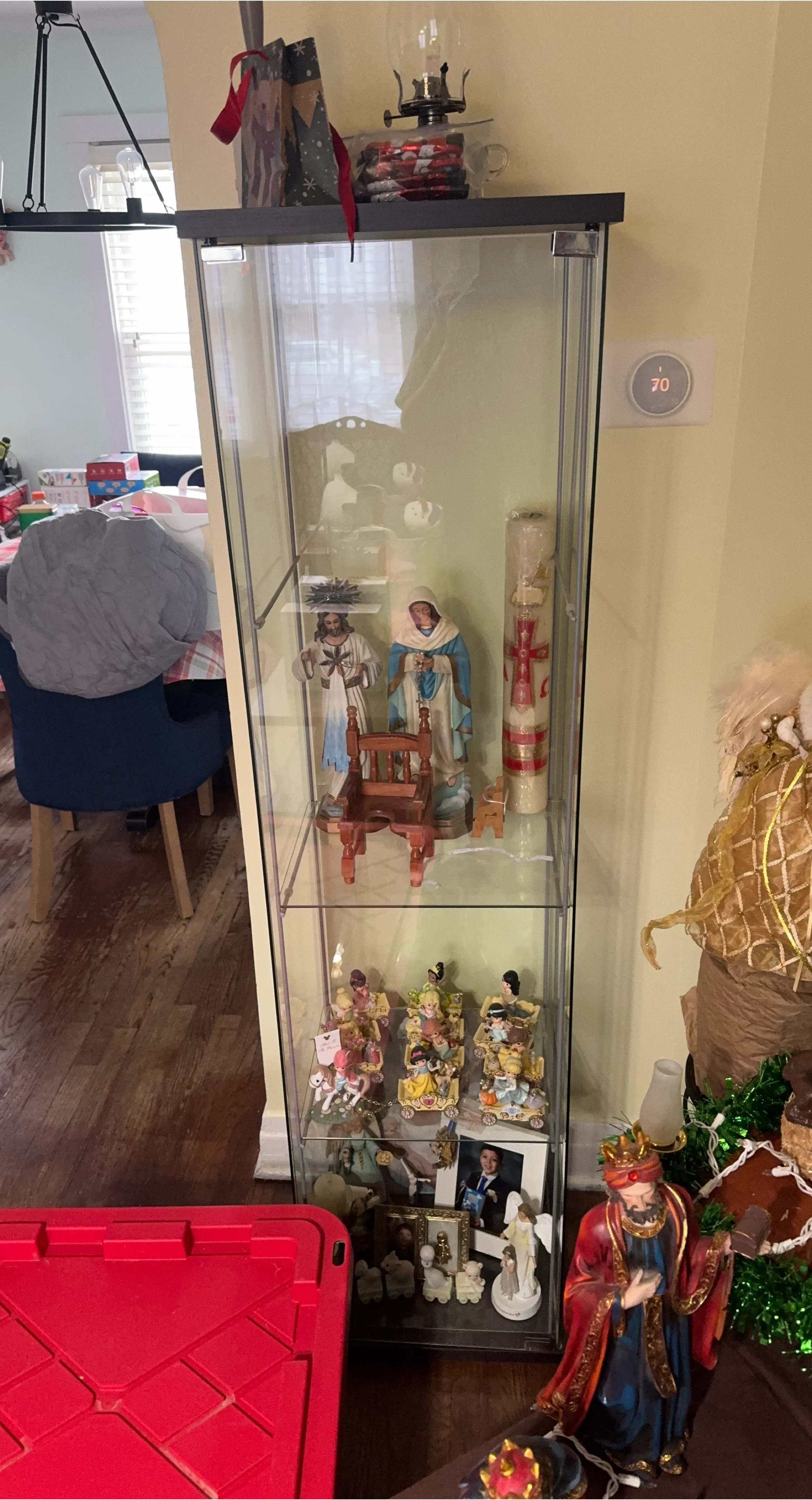 Selling a glass display cabinet in good condition. Perfect for displaying collectibles or other items you want to showcase. There are 4 glass shelves with the display case. Cabinet is in great condition.