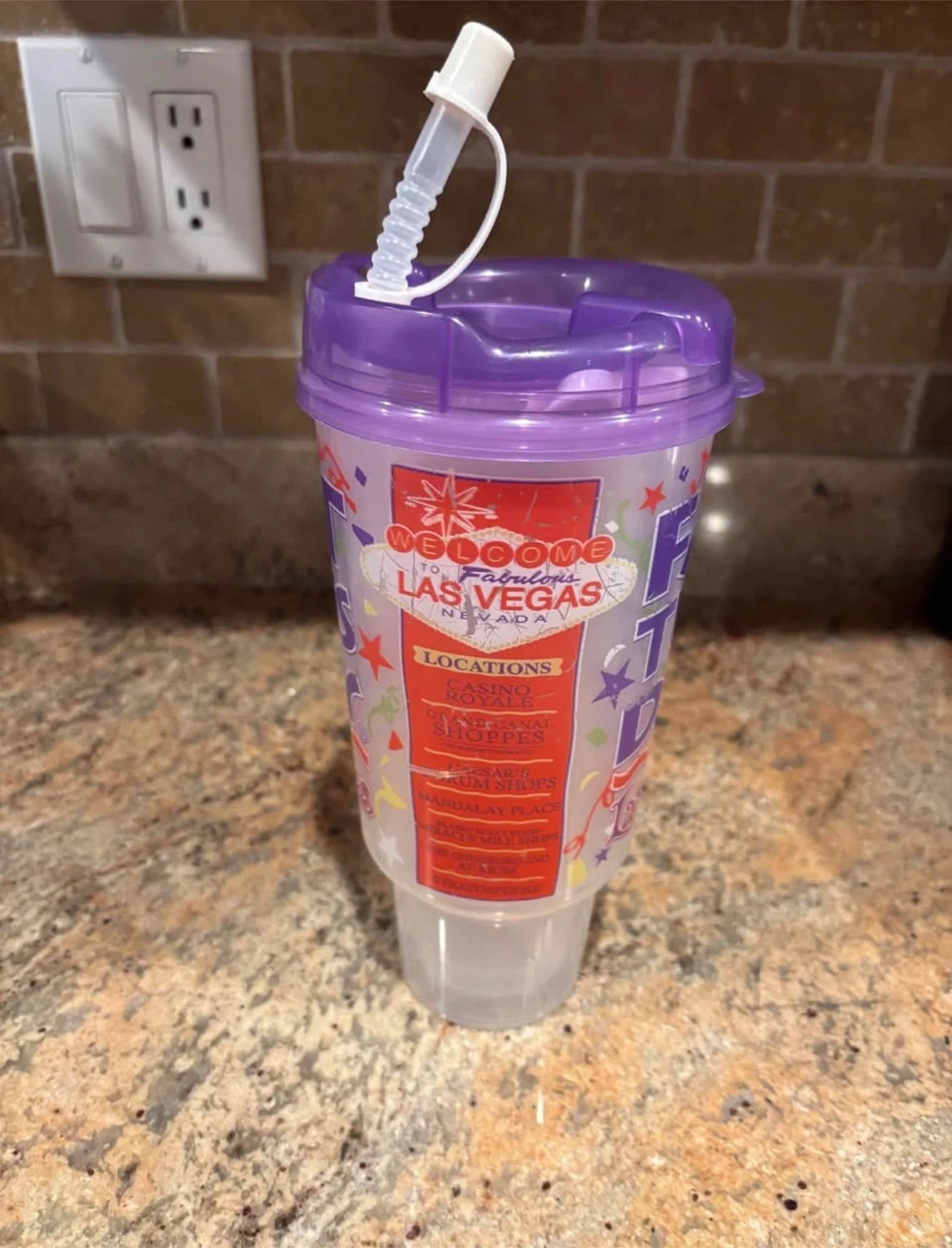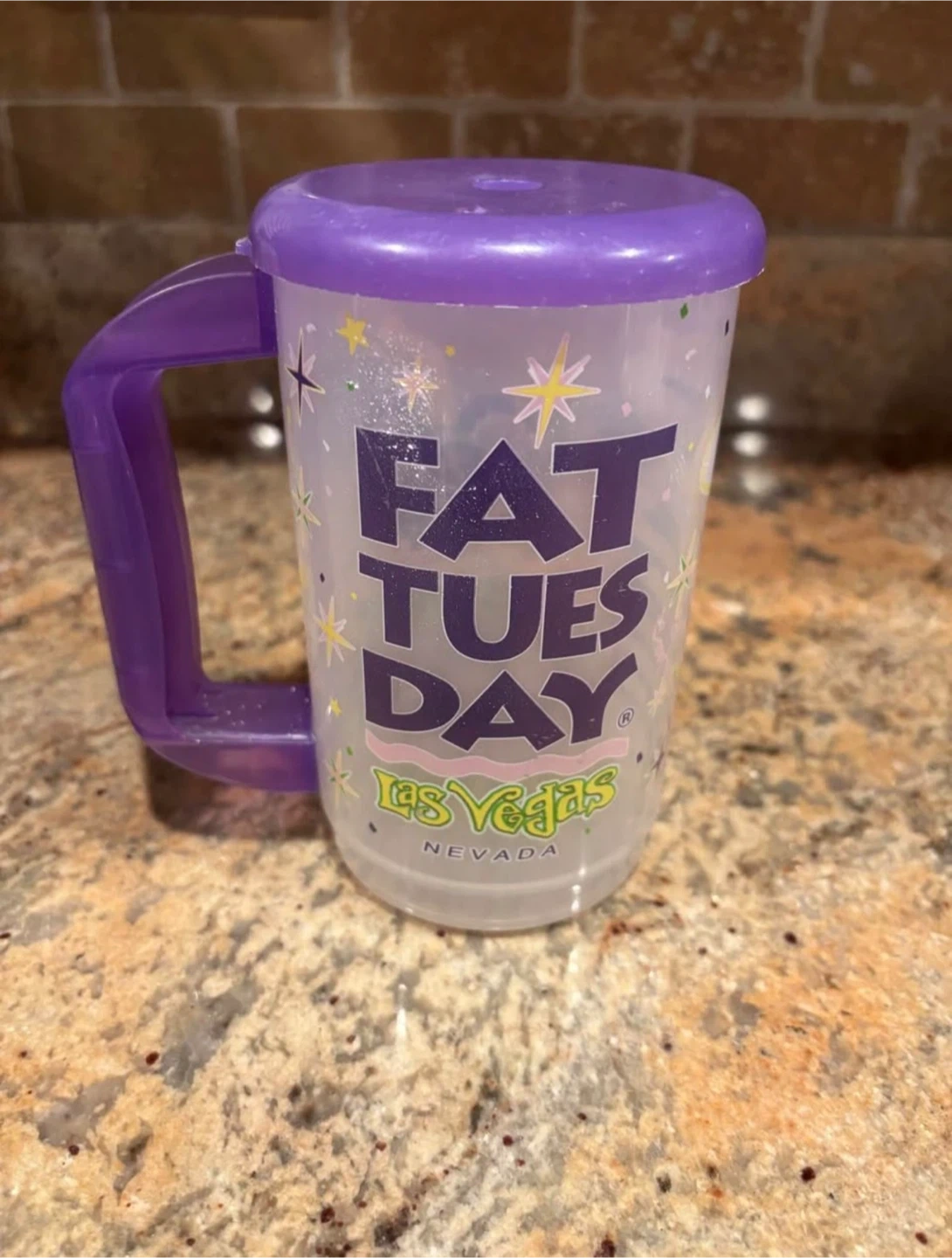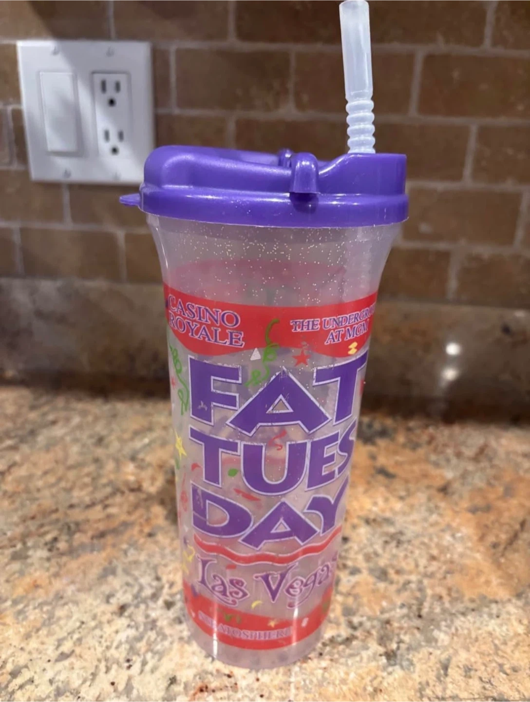 4 Fat Tuesday Las Vegas cups! Two of them come with a lid and straw, the other two with lids, perfect for your favourite drinks. They’re in good condition and ready for a new home