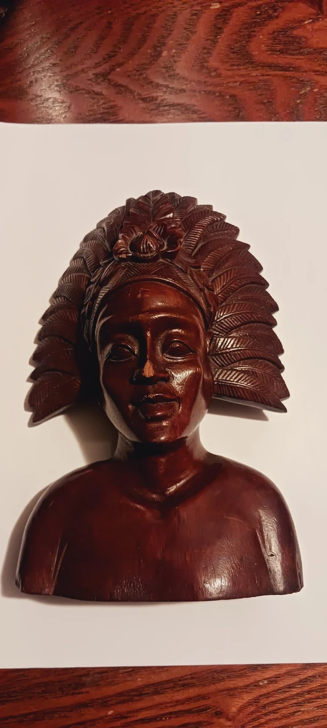 Vintage Polynesian Hand Carved Wood Detailed Tribal Native Island Woman Bust Sculpture. 8"×5". Excellent condition. It is signed by the artist. ALL MY PRICES ARE NEGOTIABLE !!