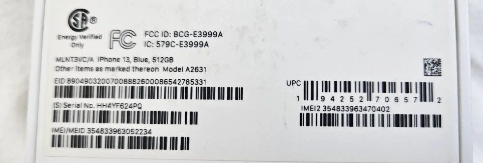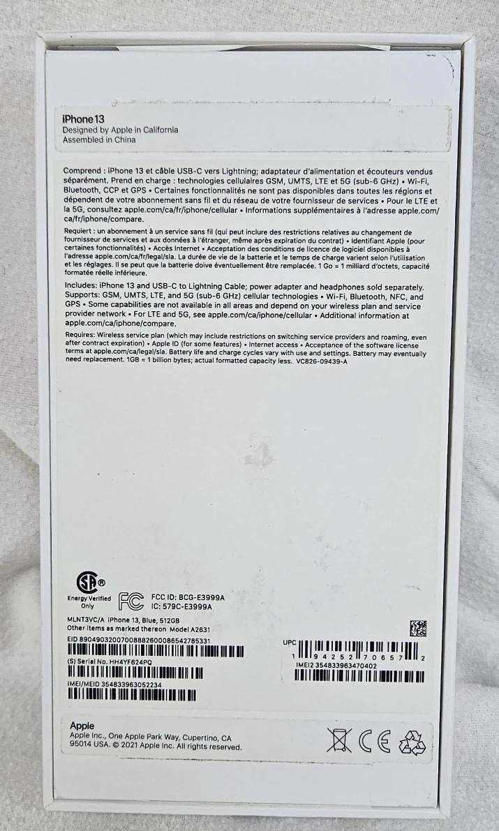 Apple iPhone 13 Blue 512 GB Unlocked Model A2631 Mint