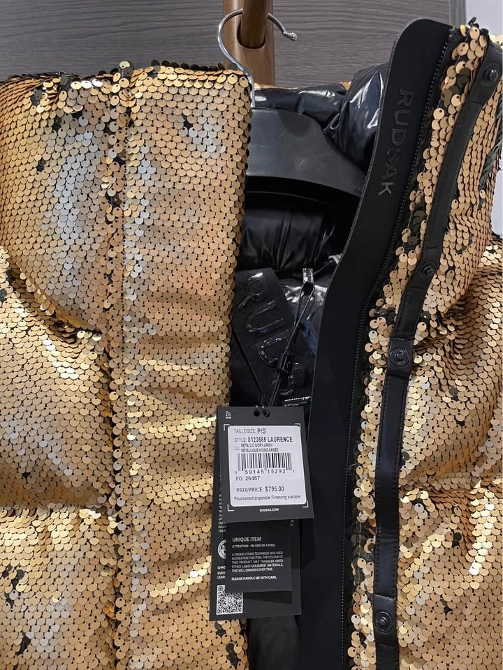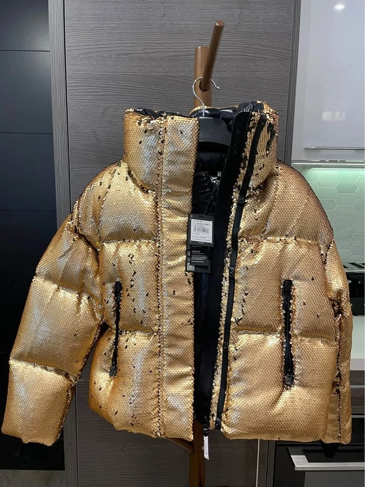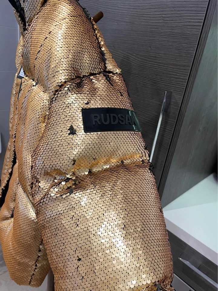 Rudsak puffer jacket, in gold sequin. Size S with an oversized fit.
