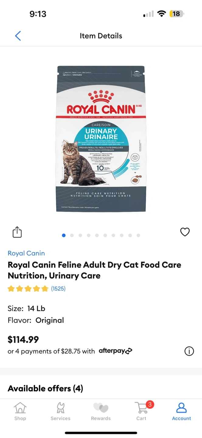 Buy & SellRoyal Canin Feline Adult Dry Cat Food - 14 lbRoyal Canin Feline Adult Dry Cat Food - 14 lb$85Selling a 14 lb bag of Royal Canin Feline Adult Dry Cat Food, Urinary Care. Originally bought for $114.99.WHERE TO MEET228 E 8th AveView MapSELLERHongSapperton331 review0 chats·1 favorites·19 viewsSEND CHAT TO SELLERHi Hong! I’m interested in your listing.Hi Hong! I’m interested in your listing.Get the Karrot app to chatSign In to chat