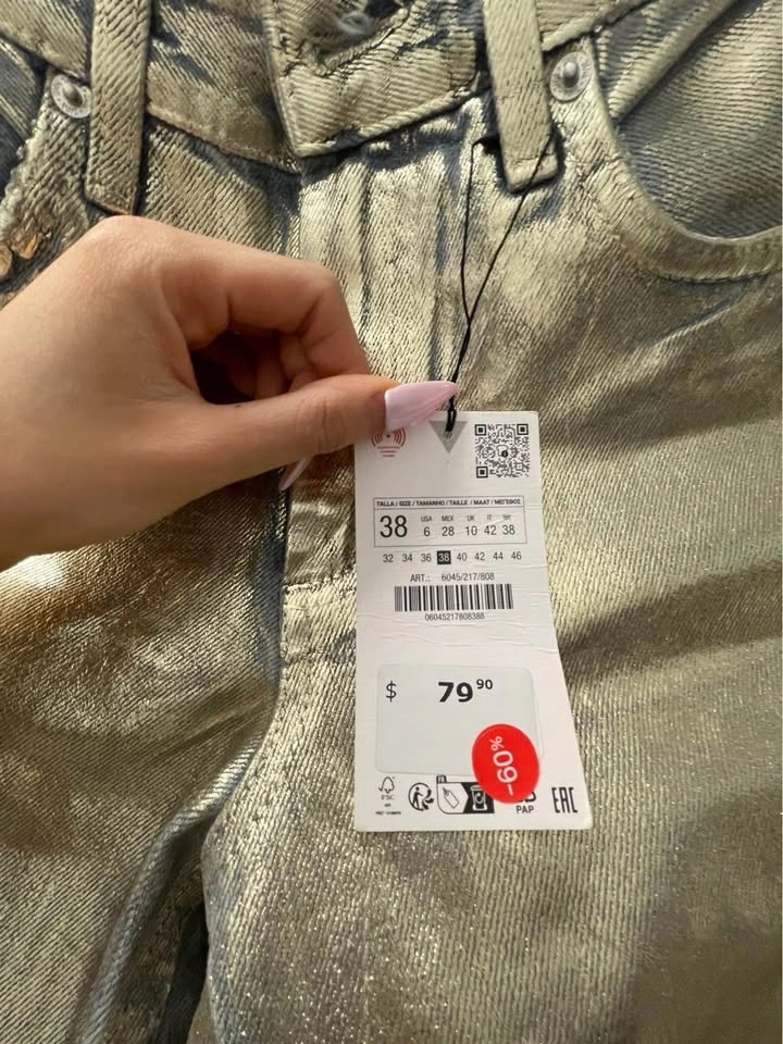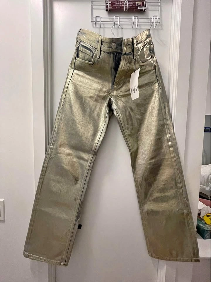 Buy & SellBrand new Zara jeansBrand new Zara jeans$25Brand new wide leg jeans from Zara — Size 6, silver foil color. Ordered these on sale but got the wrong size. Past the return window.WHERE TO MEETCheck LocationView MapSELLERKunniePatrick444 reviews1 chats·3 favorites·79 viewsSEND CHAT TO SELLERHi Kunnie! I’m interested in your listing.Hi Kunnie! I’m interested in your listing.Get the Karrot app to chatSign In to chat
