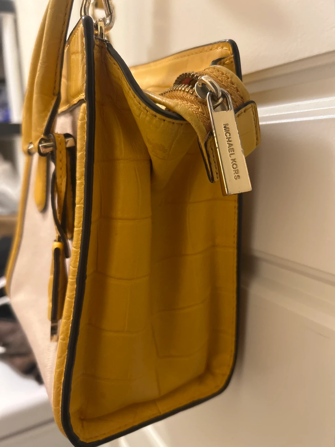 Selling a Michael Kors satchel in yellow! It's in great condition and ready for a new owner. It's a stylish and practical bag for everyday use.