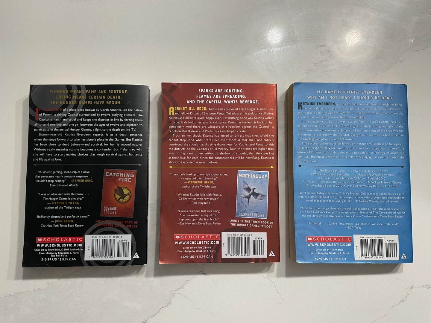 Selling the complete paperback Hunger Games trilogy by Suzanne Collins for $10