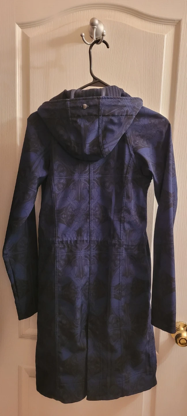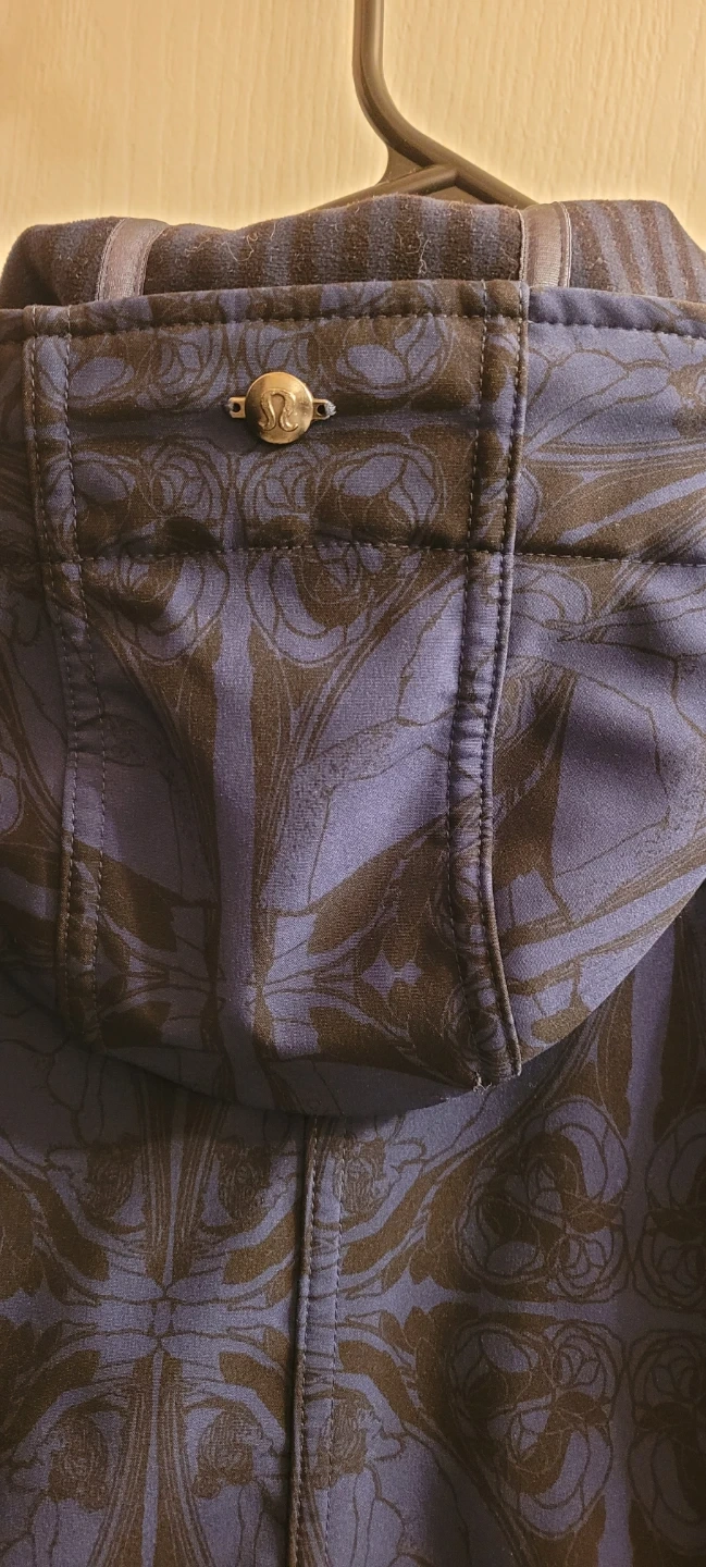 Used, lulu lemon XS, blue with pattern,attached hood, water resistant, snug fit, might be suitable for youth as well