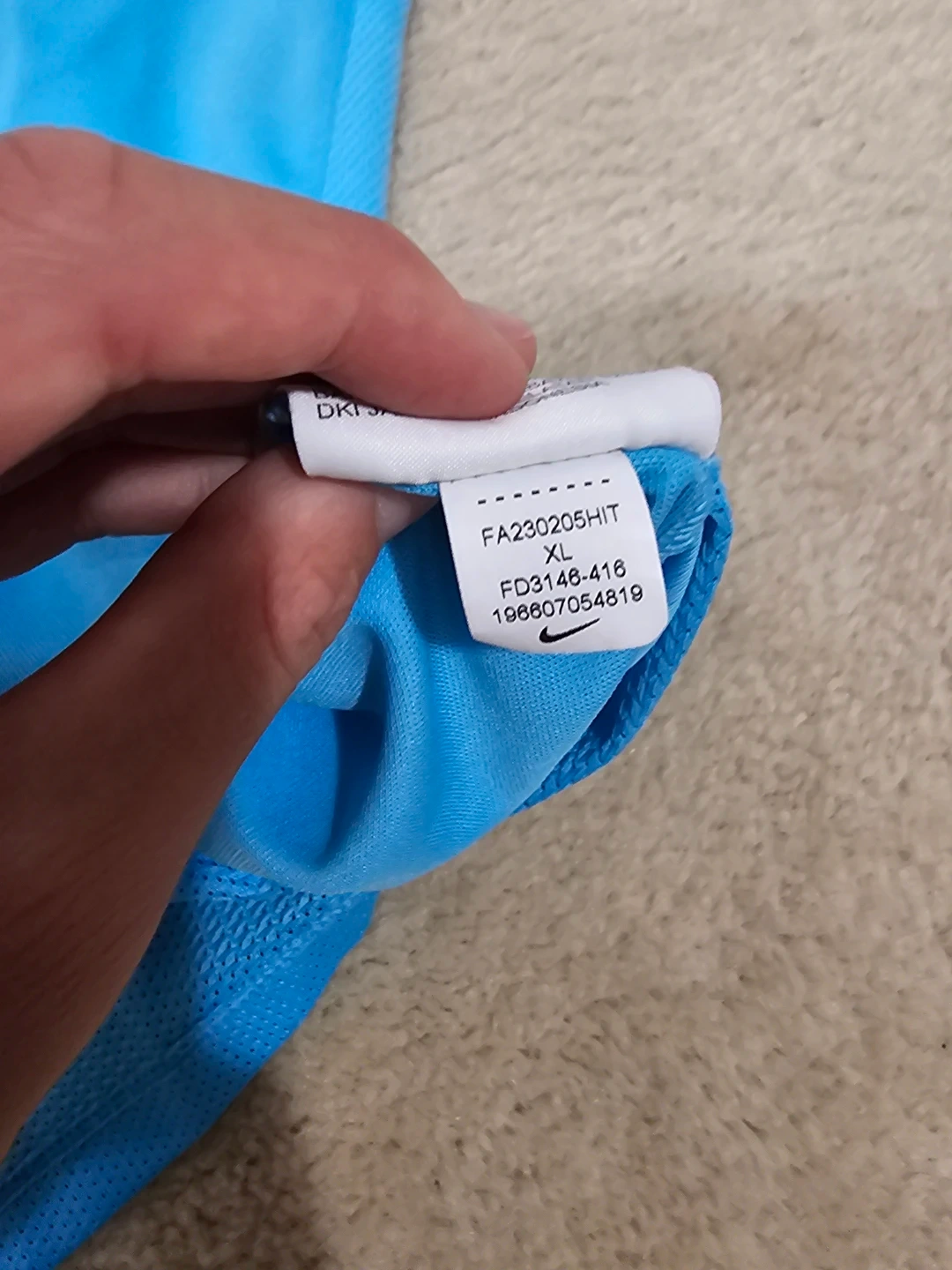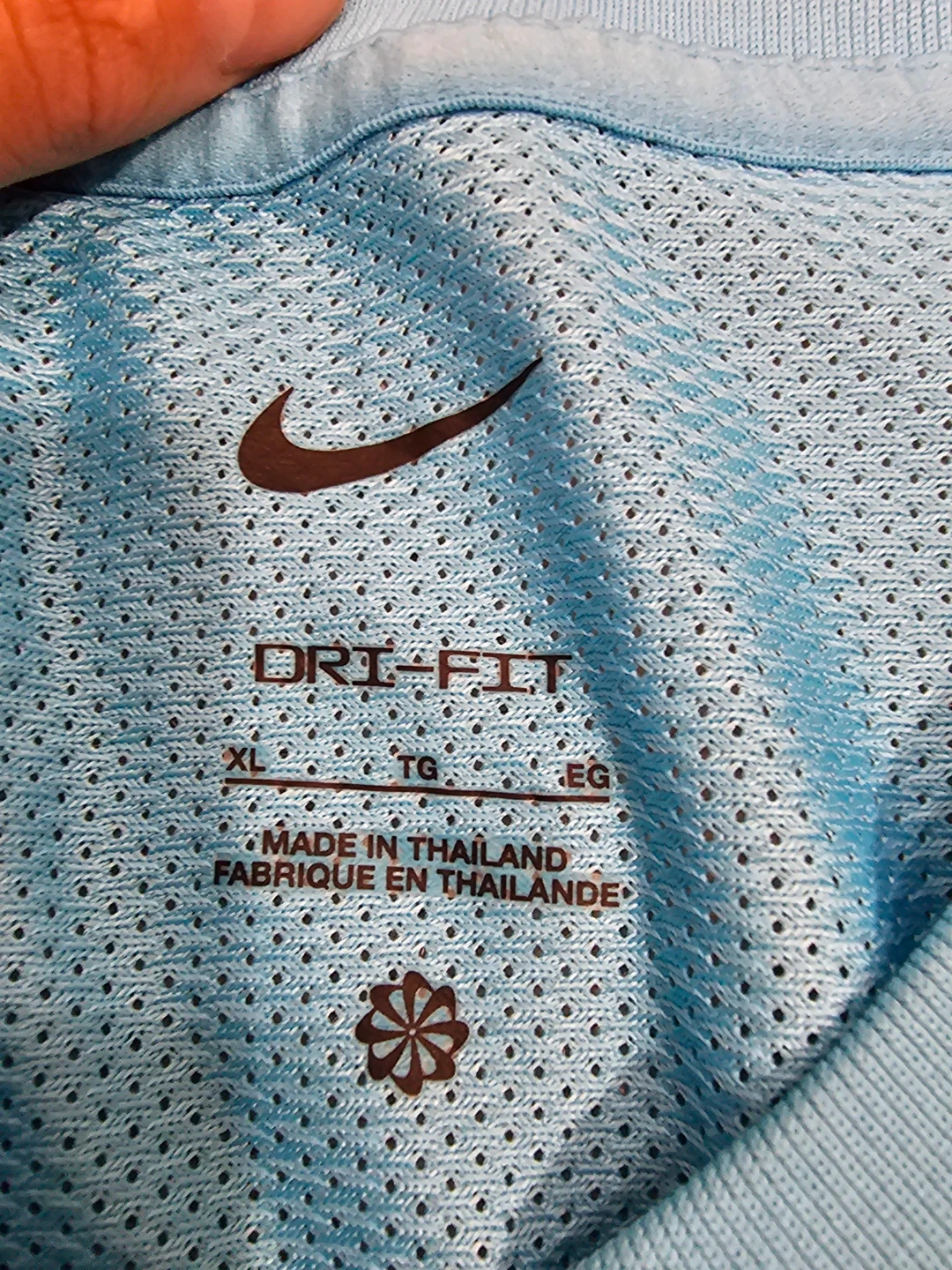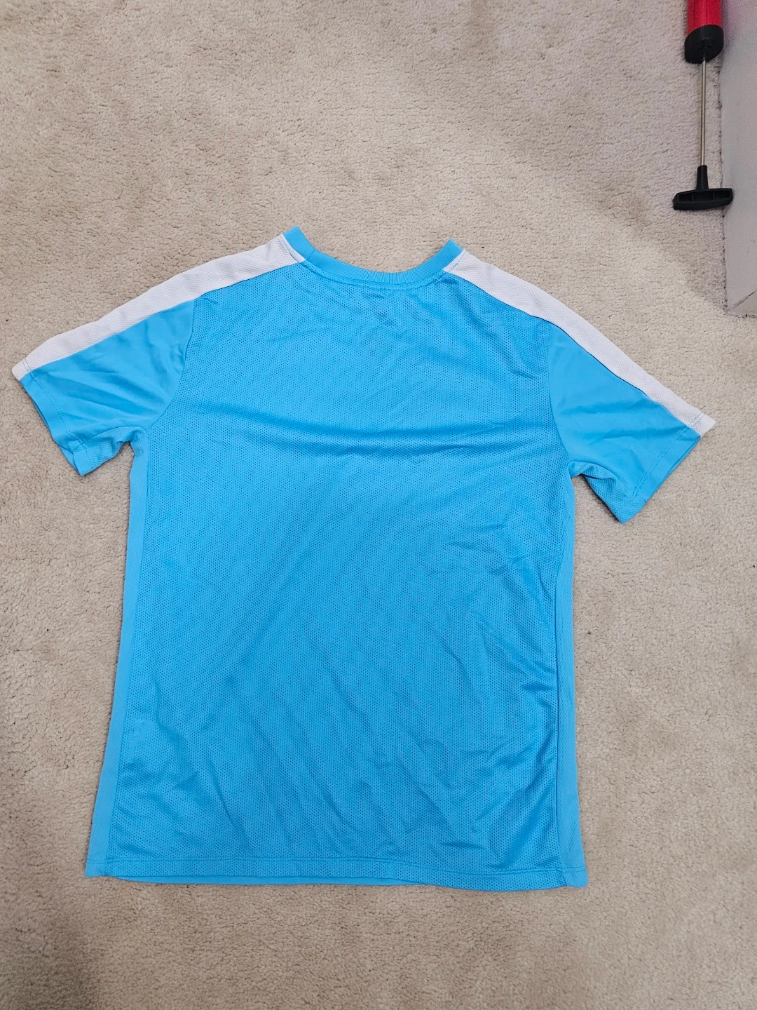 Selling a Nike Dri-FIT T-shirt in size youth XL. It's a light blue colour with white accents on the sleeves. Perfect for sports or casual wear!