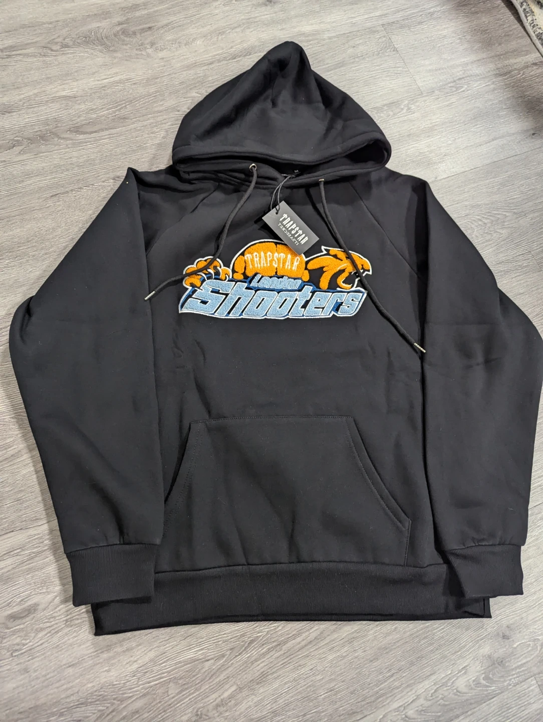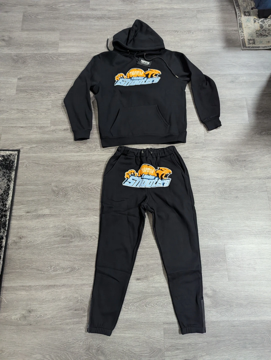 Selling a brand new Trapstar Shooters hoodie and pants set in black. The size is M. Never worn, with tags still attached!