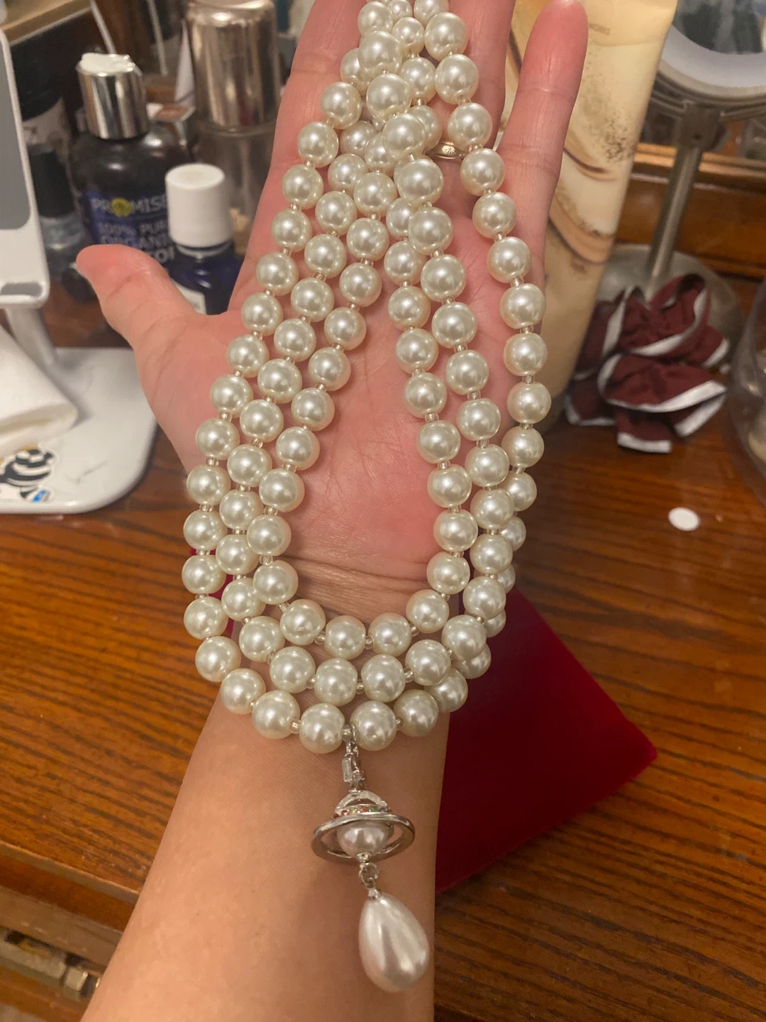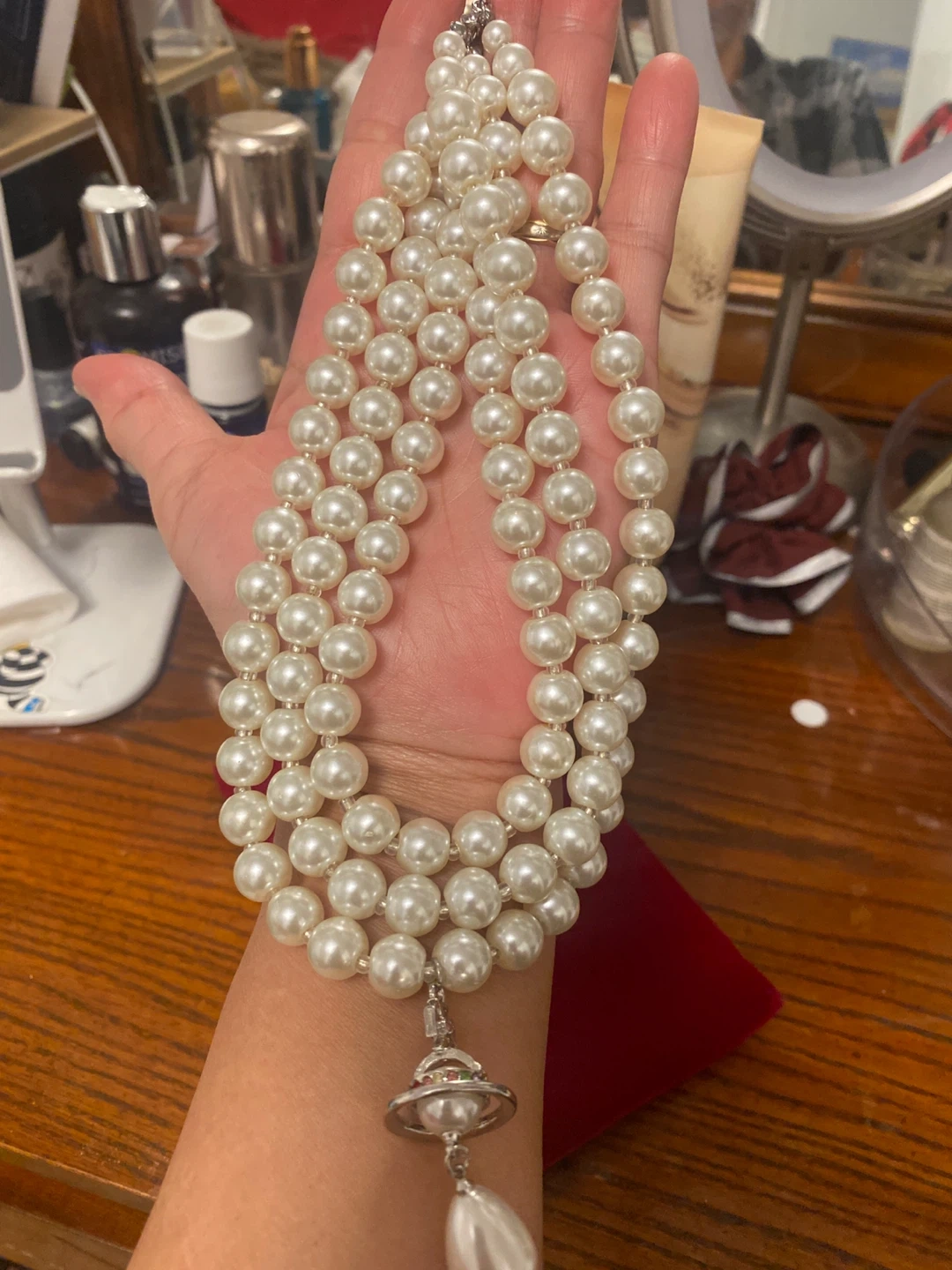Selling a beautiful Vivienne Westwood pearl necklace! It's in great condition and would make a lovely addition to any outfit. The pearls have a lovely sheen, and the pendant adds a unique touch. High-quality