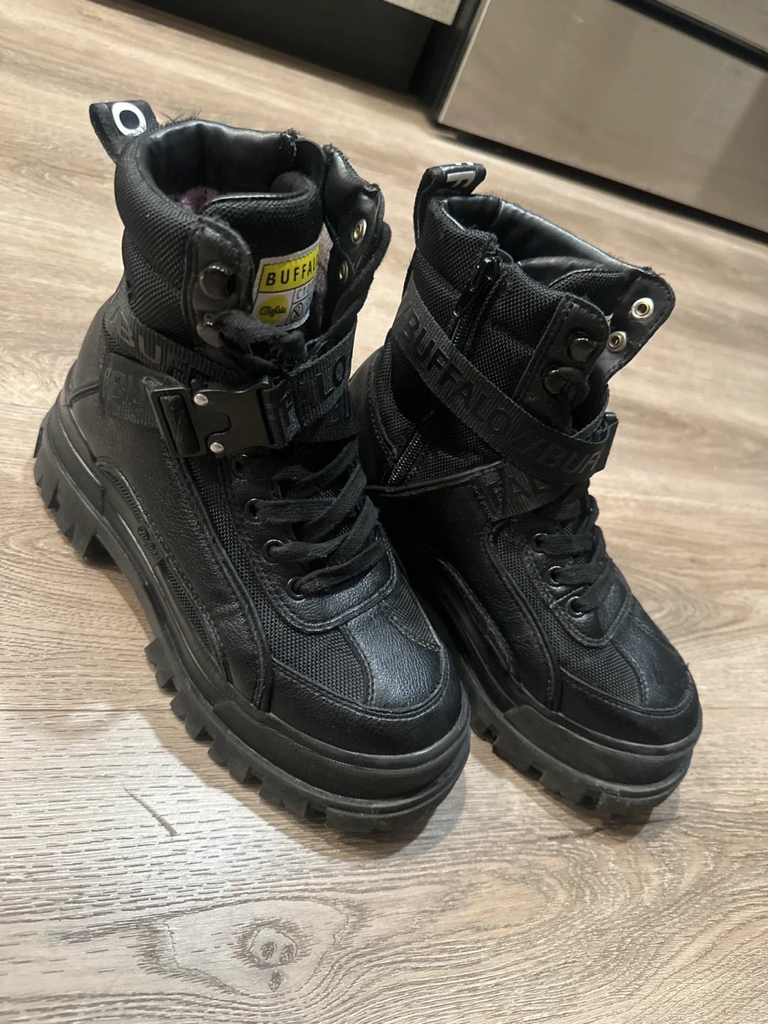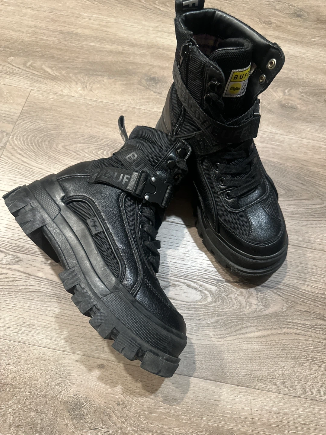 Selling a pair of Buffalo London platform boots in black. Perfect for snow and rain. Keeps you warm.