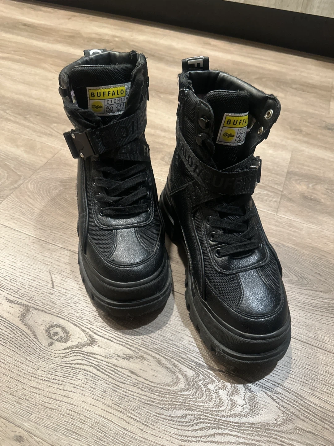 Selling a pair of Buffalo London platform boots in black. Perfect for snow and rain. Keeps you warm.