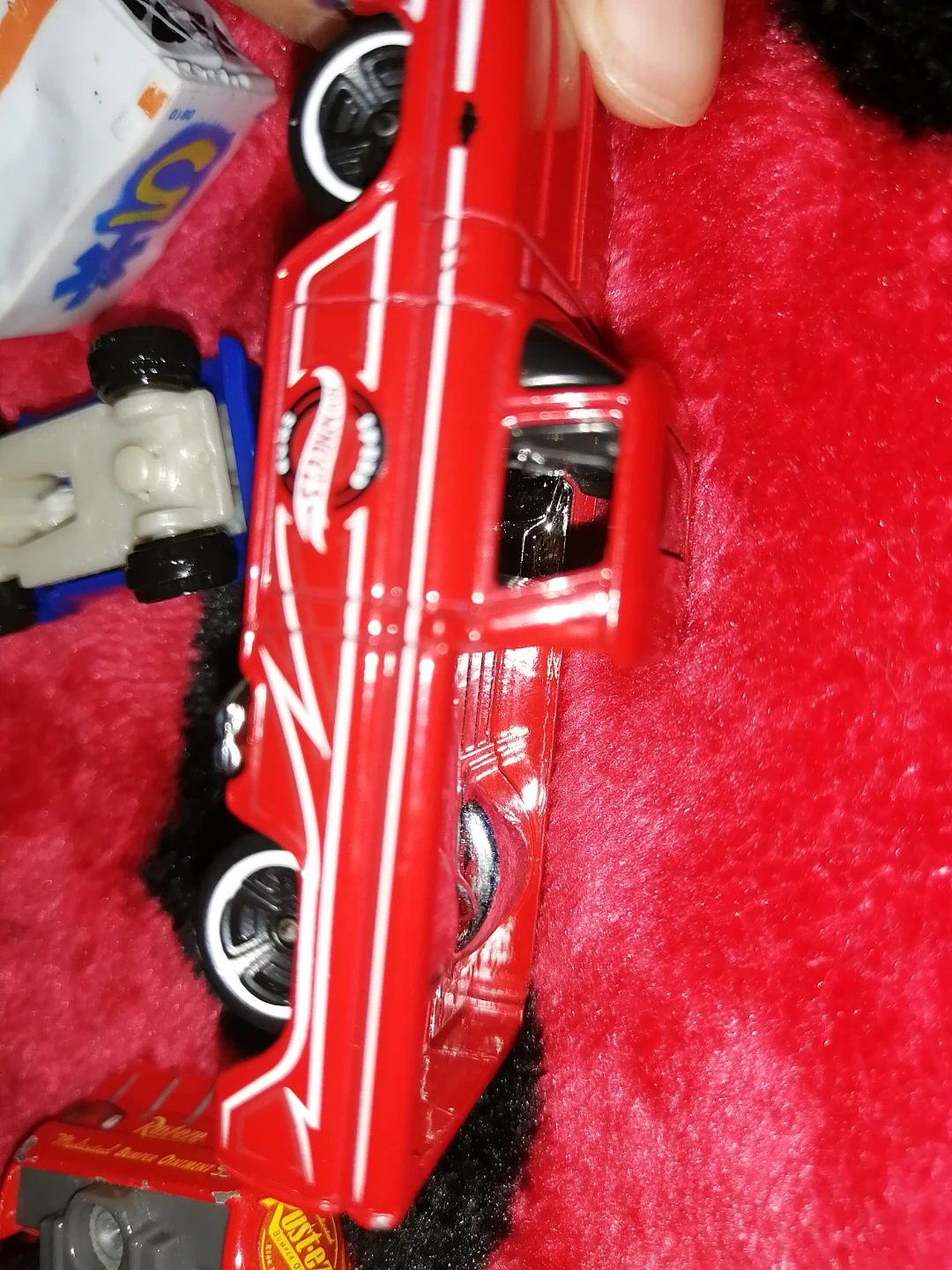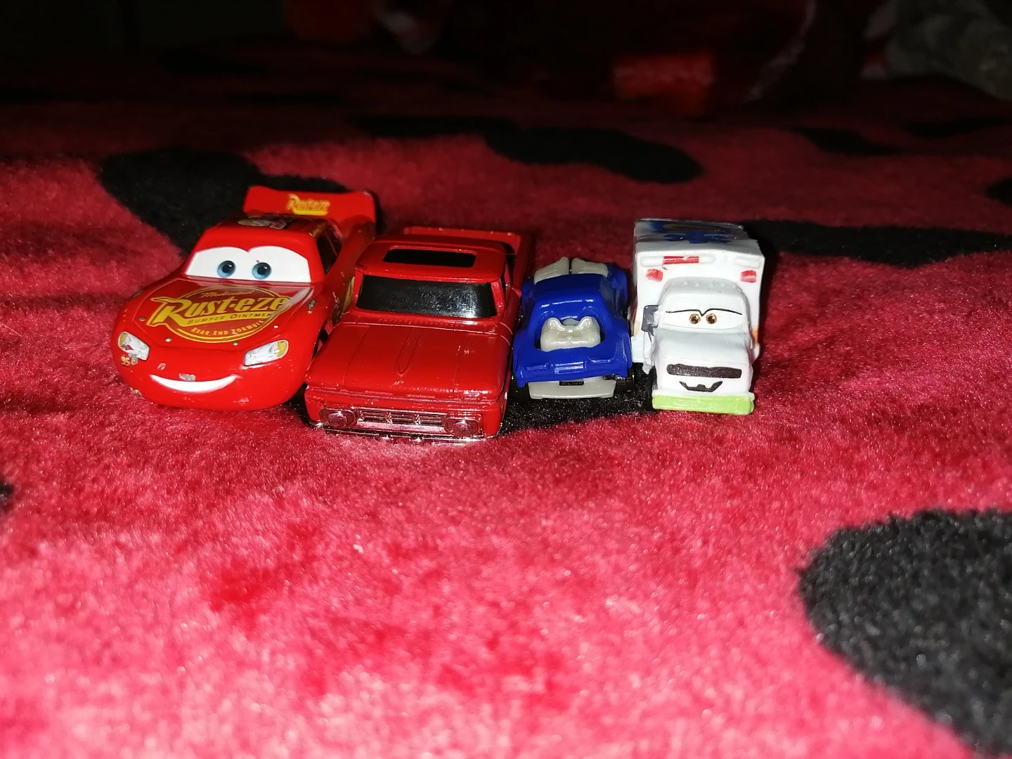 Selling a few toy cars, including a white ambulance with an orange stripe. Also included are a red car with the number 95 and a blue car. They are in used condition, but still fun to play with!