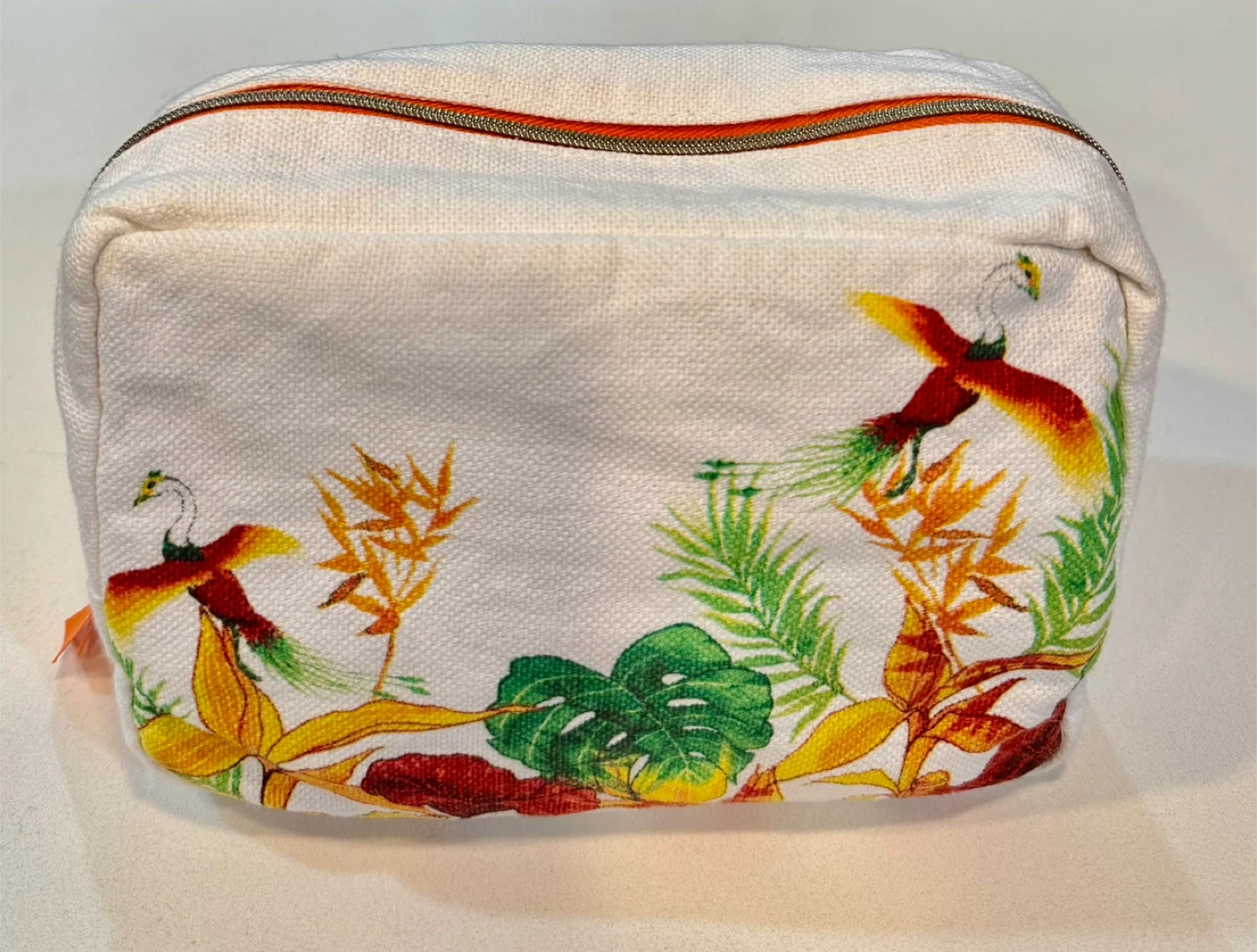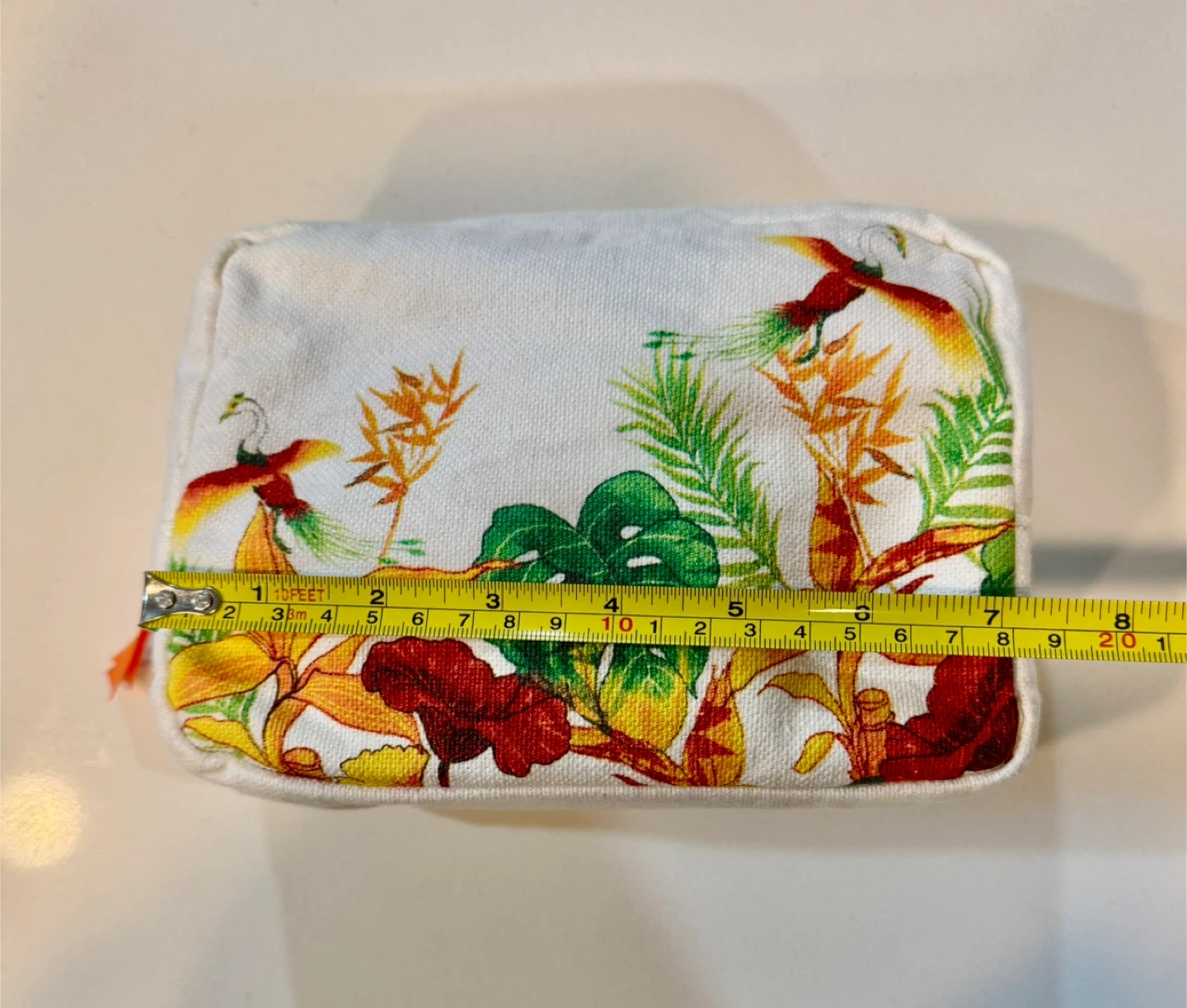 Cute Clarins cosmetic bag with a vibrant floral design! It's in great condition and perfect for travel or everyday use.