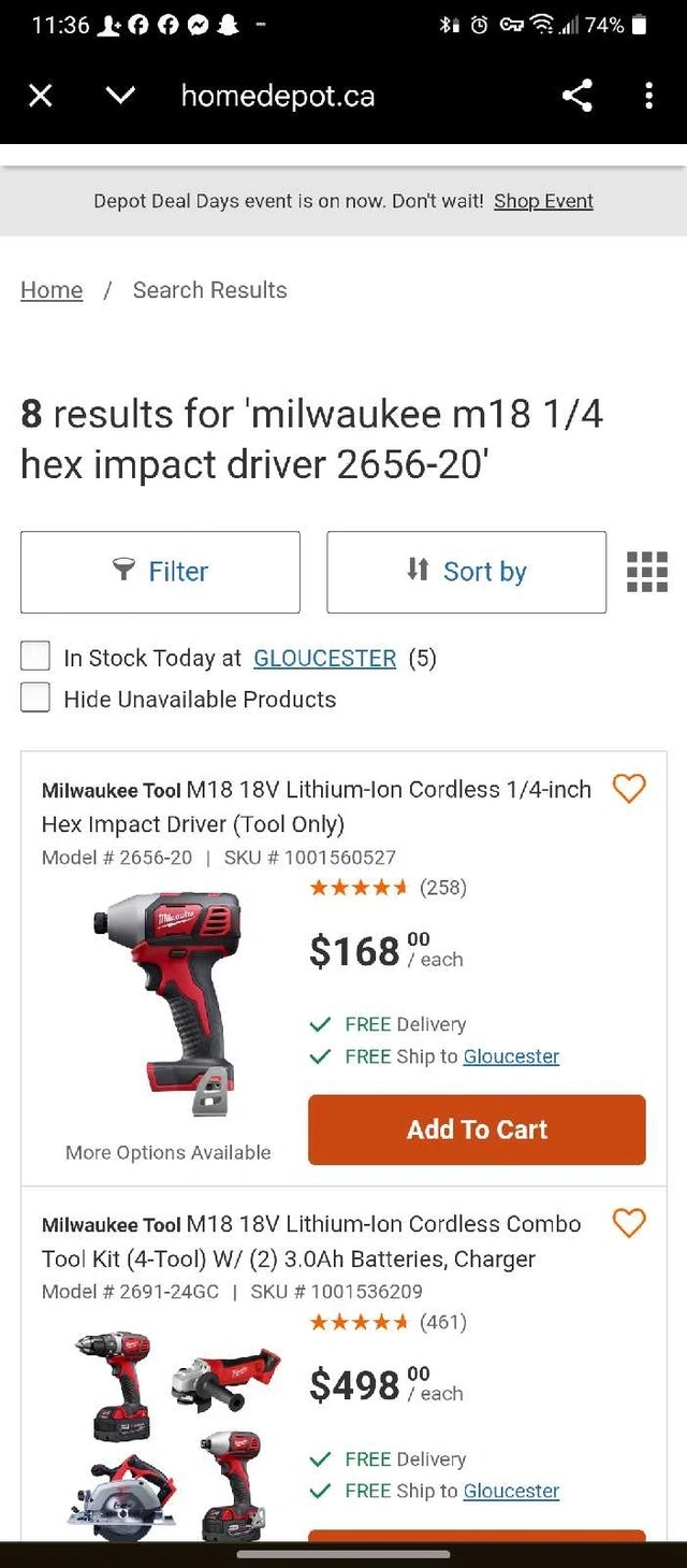 - 1 new 1/4" hex impact driver (model#2656-20)