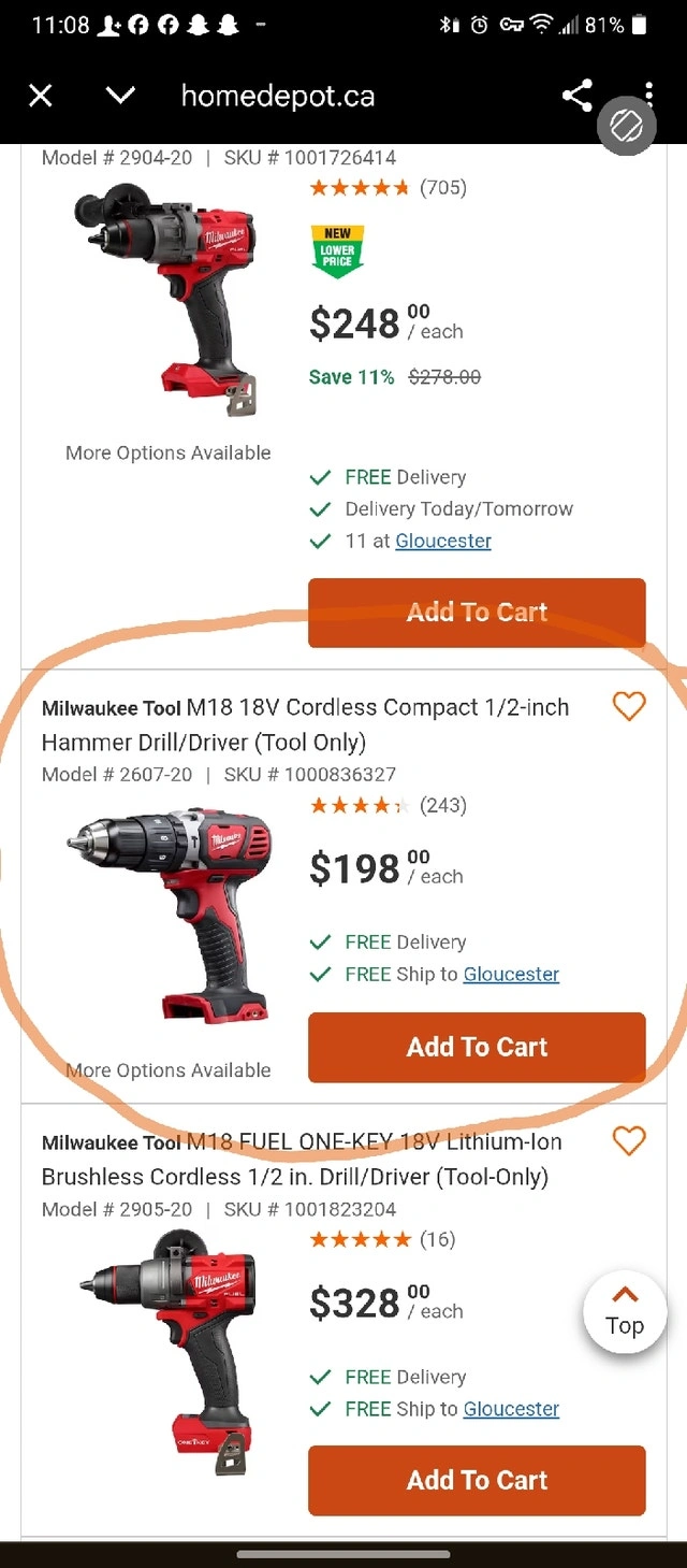 - 1 M18 cordless hammer drill/driver (model#2607-20)