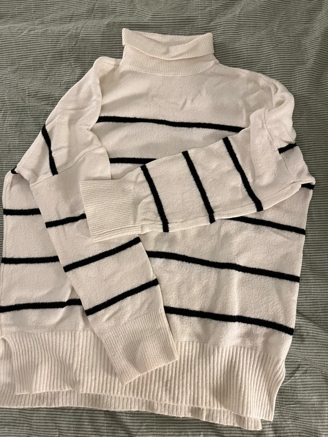 Selling an Abercrombie & Fitch striped turtleneck sweater in size XS (fits slightly oversized, more like a small).